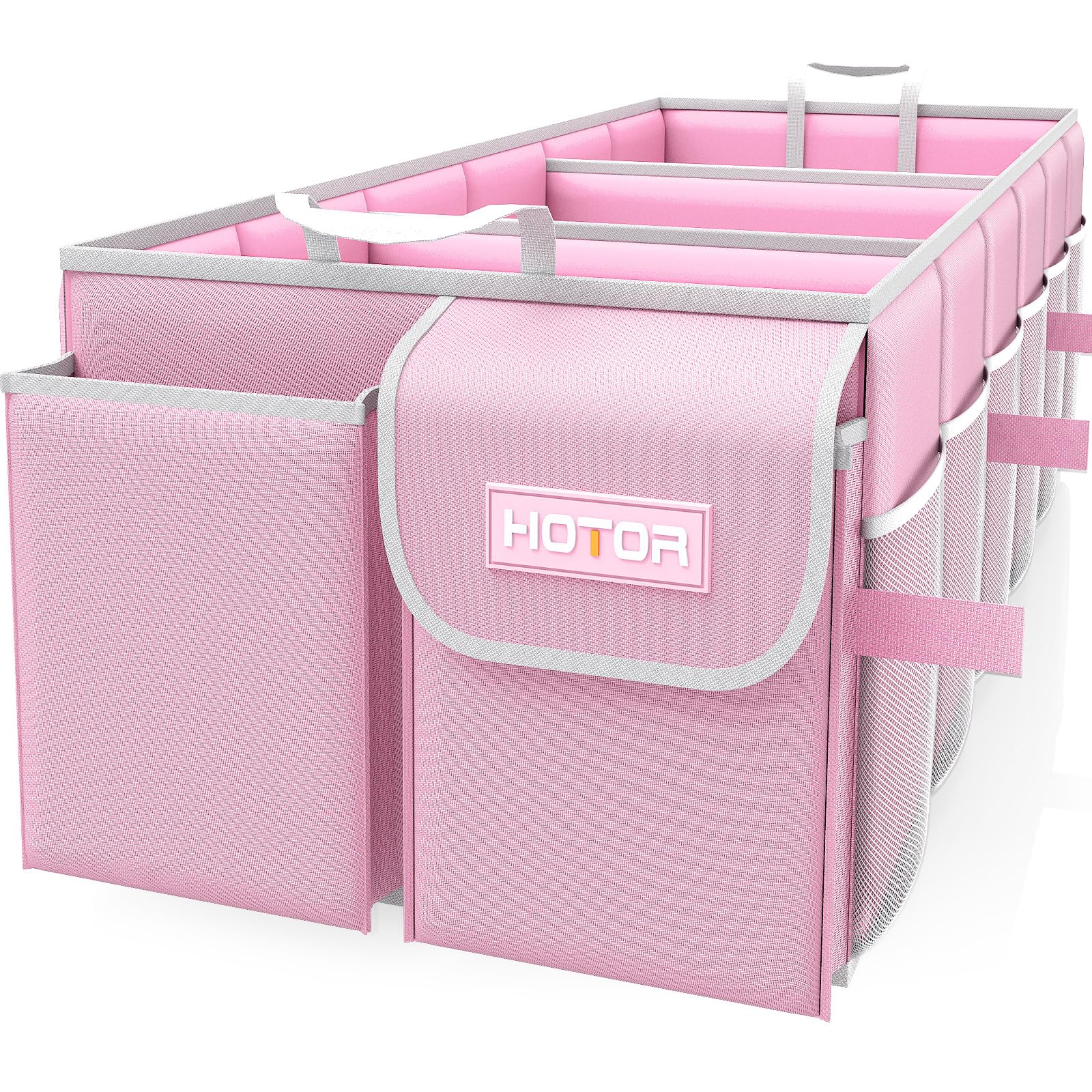 CONVENIENT ACCESS: HOTOR car trunk organizer for SUV is equipped with 2 compartments and 6 stretchy mesh pockets to make items easy to see and grab when needed. No more digging around a messy trunk to find what you need. Just grab and go.