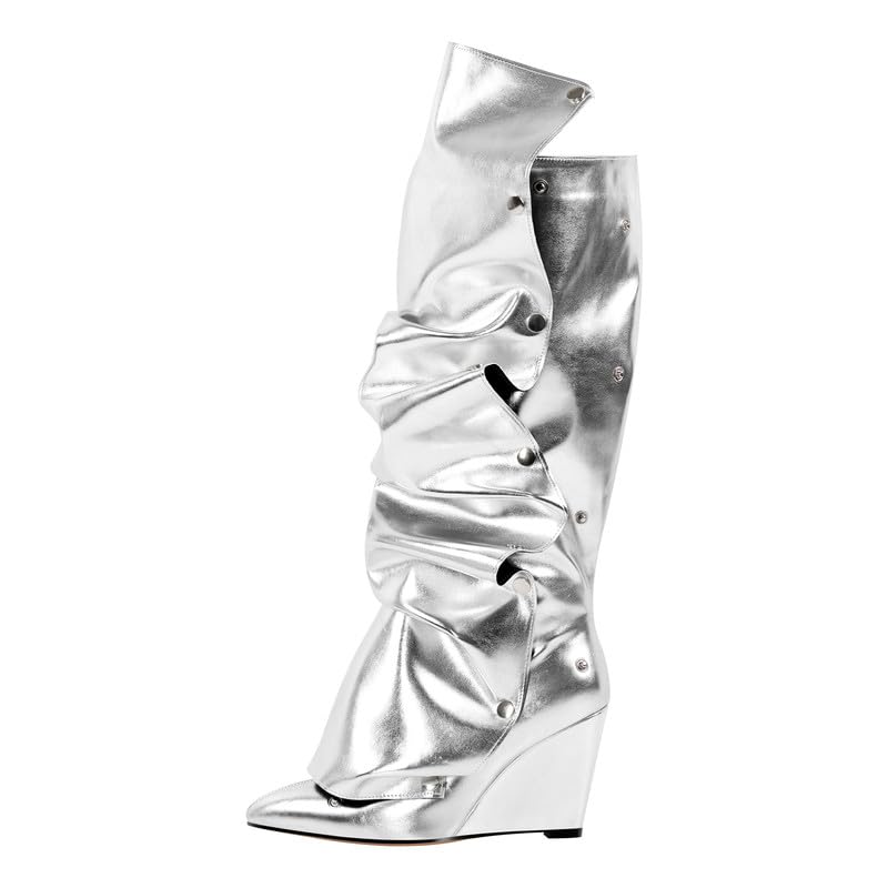 Optimum Height: 9CM wedge heel, stable and comfort for walking, shaft height 35cm/13.8", top opening 36/14.1"