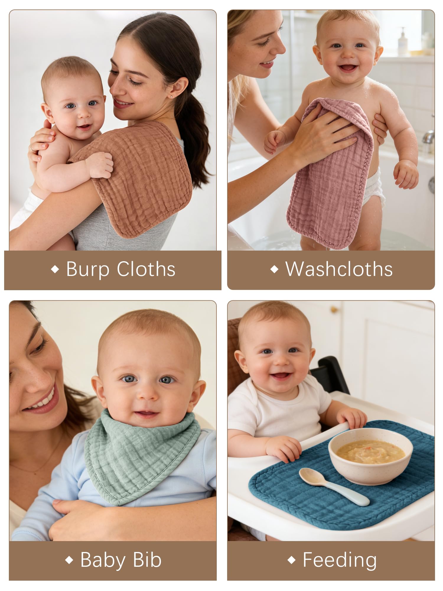 💎ULTRA ABSORBENT- These washcloths are perfect for catching spills and drools, thanks to the ultra-absorbent 100% cotton muslin fabric. It feels just like touching a soft cake, truly a baby essential item.
