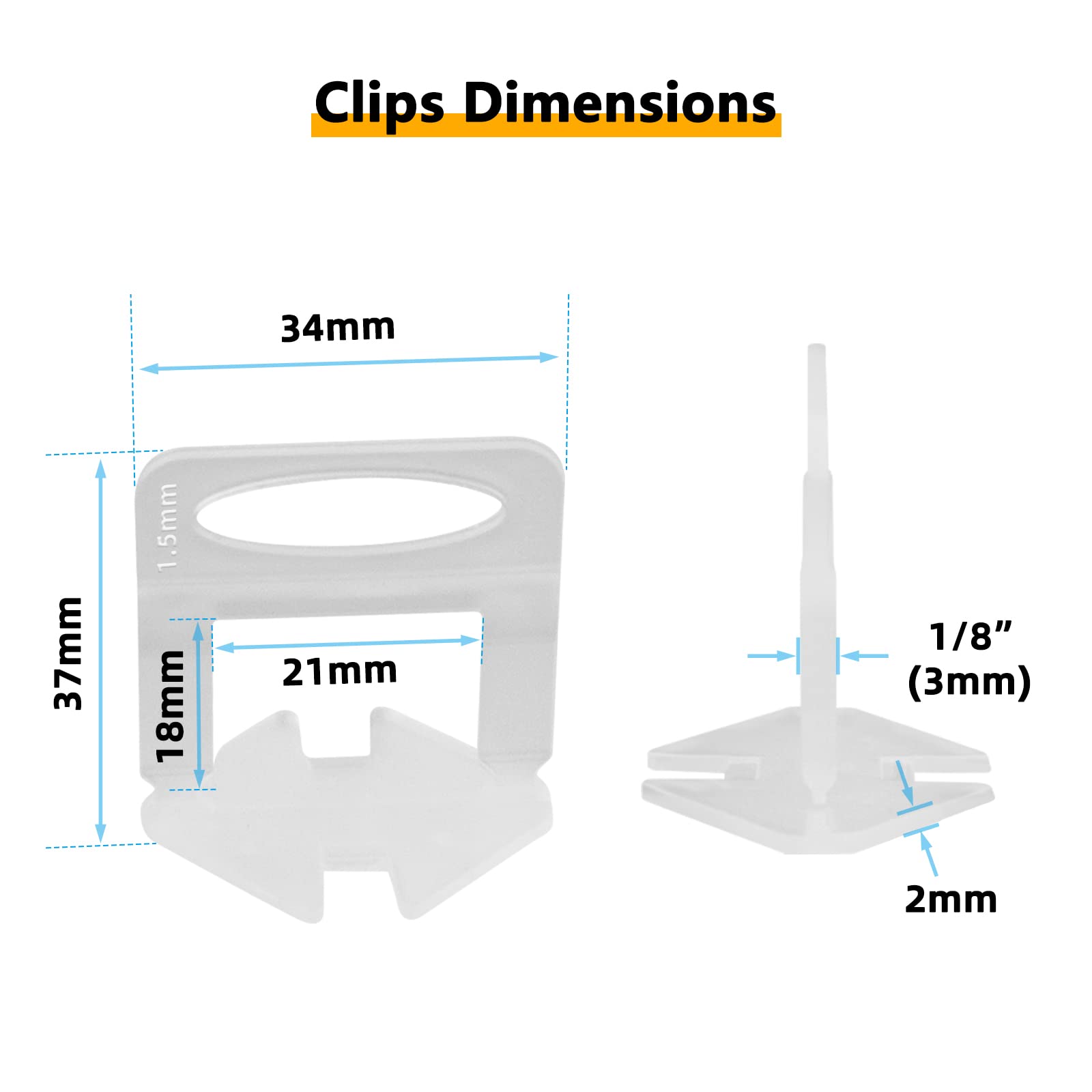 【400Pcs DISPOSABLE CLIPS】Suitable for 1/8" (3mm) to 1/2"(12mm) thickness of the tile, allows for a 1/8"(3mm) minimum grout joint. Very easy to install & remove. Can be used for Flooring and Walling
