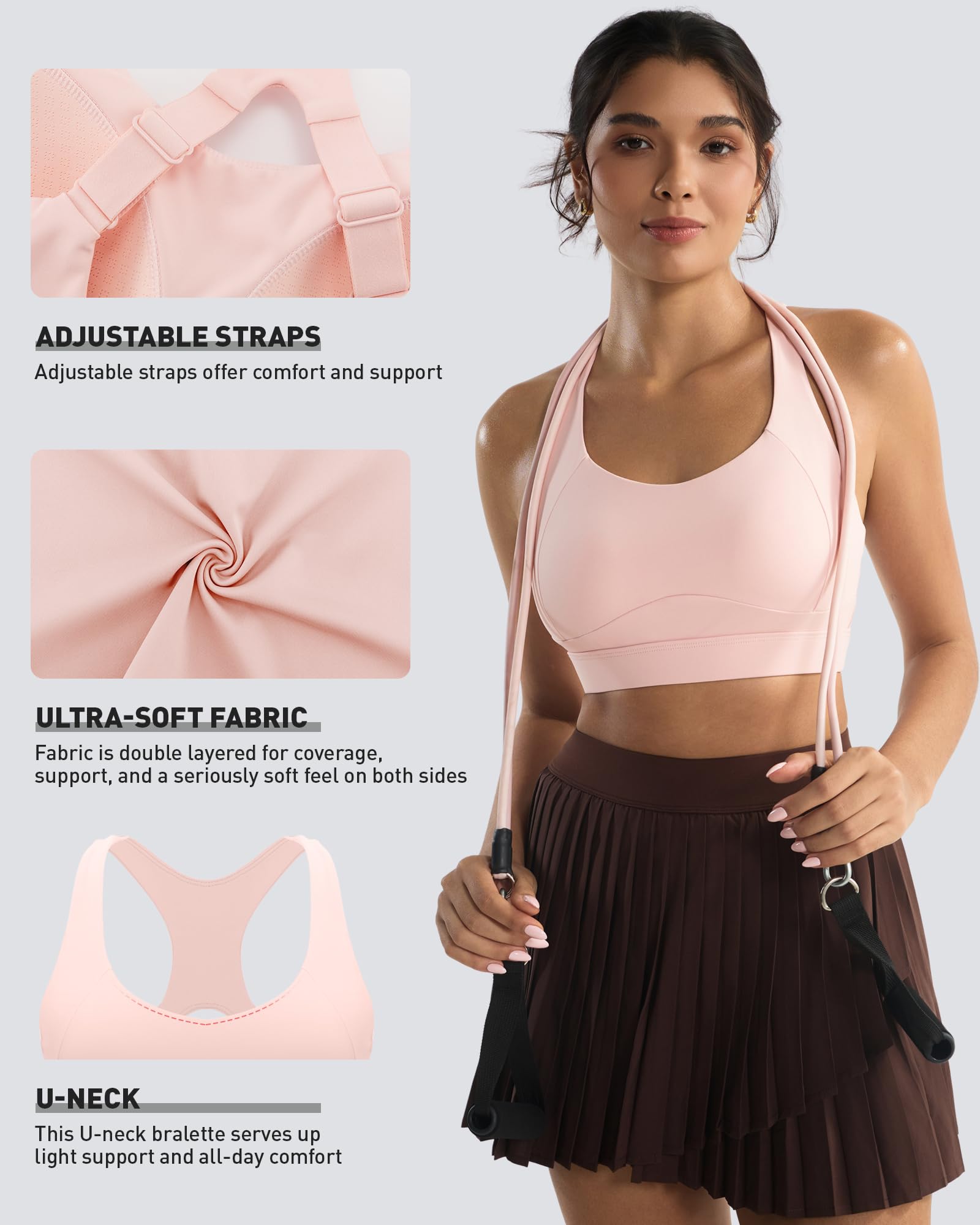 ✅ 【ADJUSTABLE FIT】:Tired of one-size-fits-all straps that dig in or slip off? Upgrade your comfort with our newly designed molded cup sports bra. The racerback provides superior back coverage and stability, while the fully adjustable shoulder straps let you customize your fit in seconds. Achieve a personalized, secure feel and say goodbye to restricted movement and constant readjustments. It’s the hassle-free fit you’ve been looking for—perfect for all-day wear and high-energy workouts.