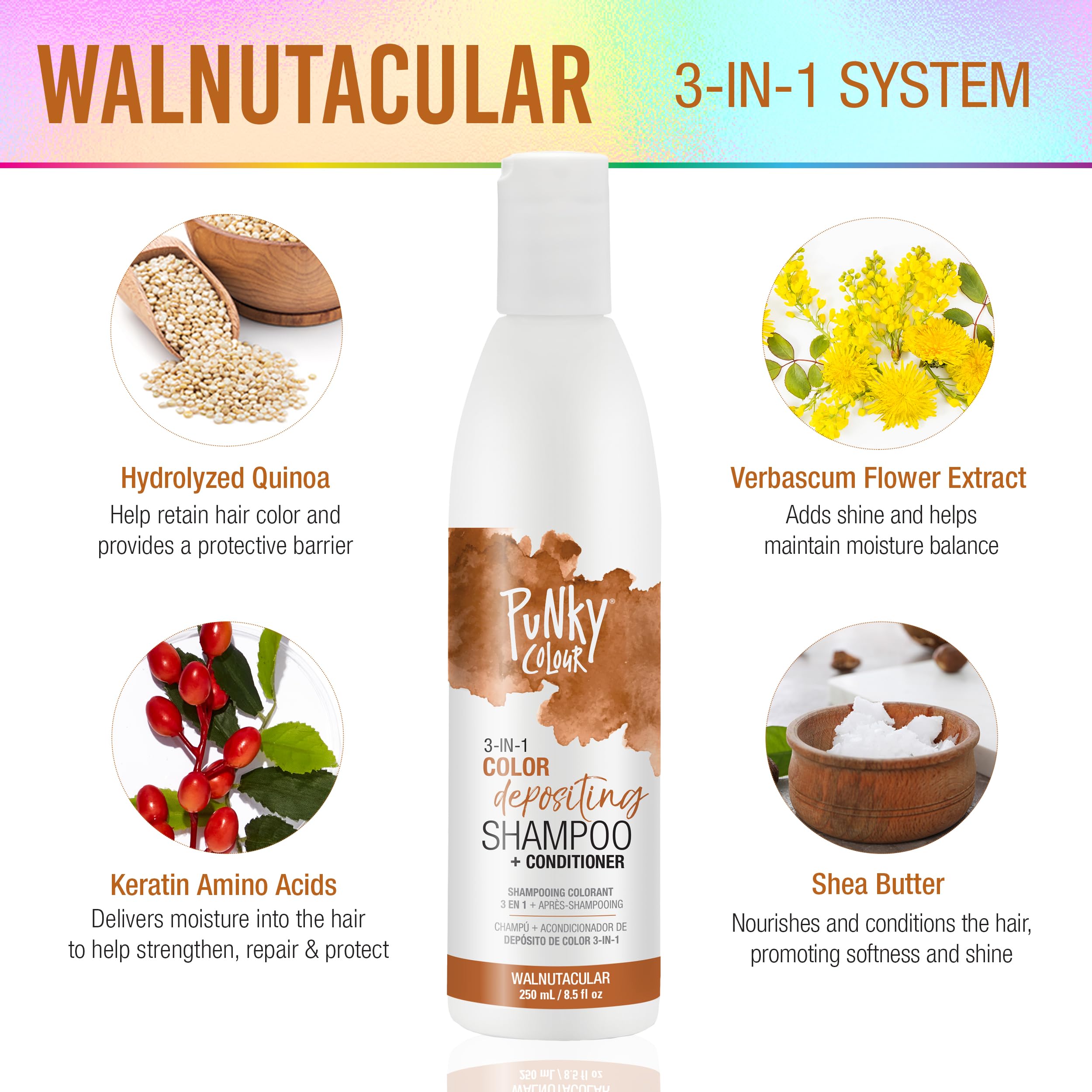 Walnutacular! This color refresher enhances Walnut tones with every use, giving you vibrant, spectacular walnut color. Use this to boost your shade's vibrant tones while canceling out brassiness for fresh-looking hair color with great luster and shine.