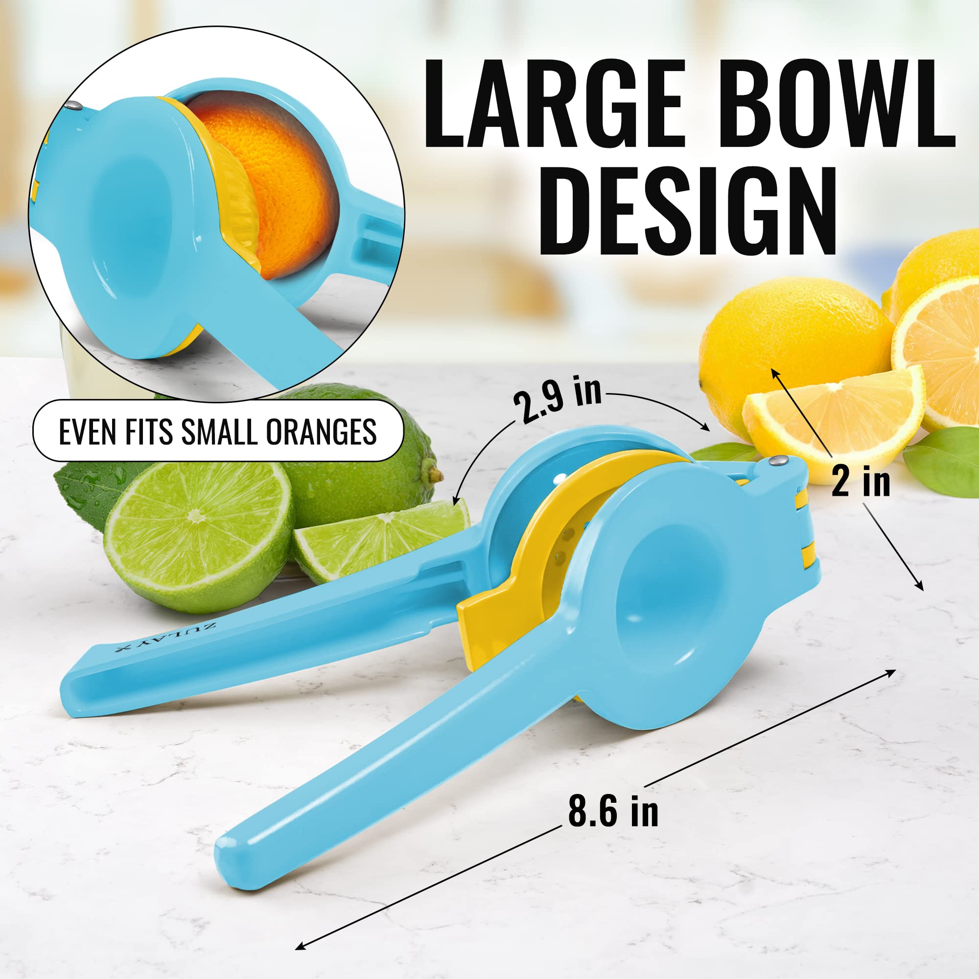 STURDY AND HEAVY DUTY BOWLS: This durable manual juicer is made from aluminum and is finished off with a food-grade coating, making it a perfect addition to your cocktail accessories for years to come. The ergonomic handle makes the lemon lime squeezer super comfortable for even kids to use.