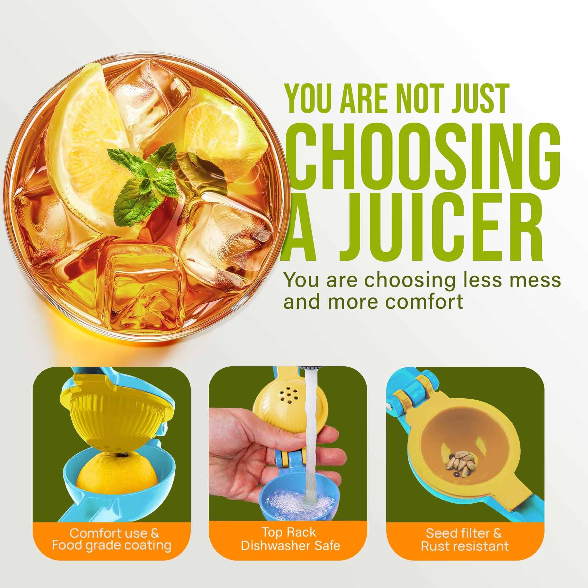 SQUEEZE OUT EVERY DROP OF JUICE: Our 2-in-1 lemon squeezer won’t waste a single drop from your favorite fruit! We have designed this lime juicer to be easy on hands. Watch limes, lemons, and small oranges beg for mercy, even with a soft squeeze. The holes at the bottom of the citrus juicer serve as a seed filter to prevent the pulp and seeds from getting in your way.