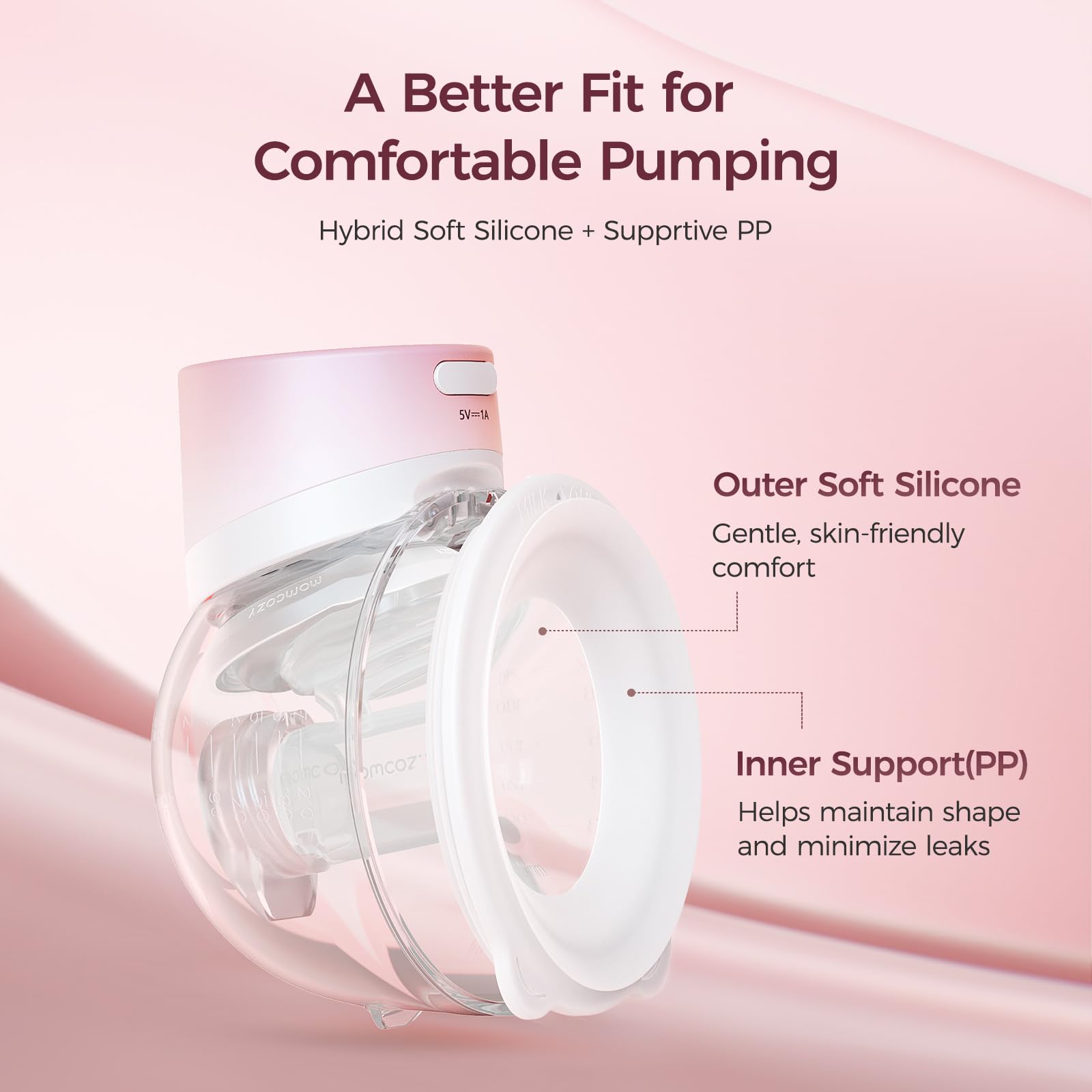 Faster & More Efficient Pumping. Powerful -292 mmHg suction delivers up to 28.2% faster pumping and 6% more milk output than the previous model. (*Based on Momcozy Lab data)