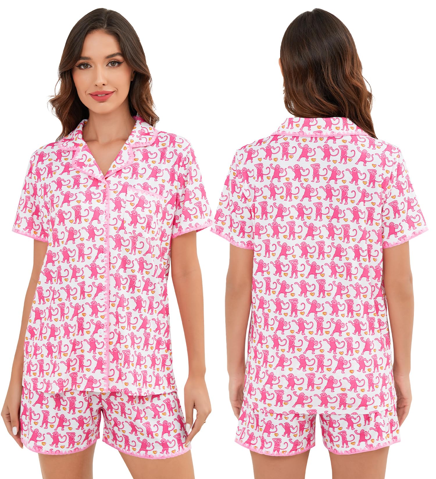 Pajama Tops: Short sleeve pajamas with notched collar, button front pajama shirt and convenient chest pocket for effortless style and convenience; To top it off, we added eye-catching hand-whipped piping on both the top and shorts for a cute, stylish look
