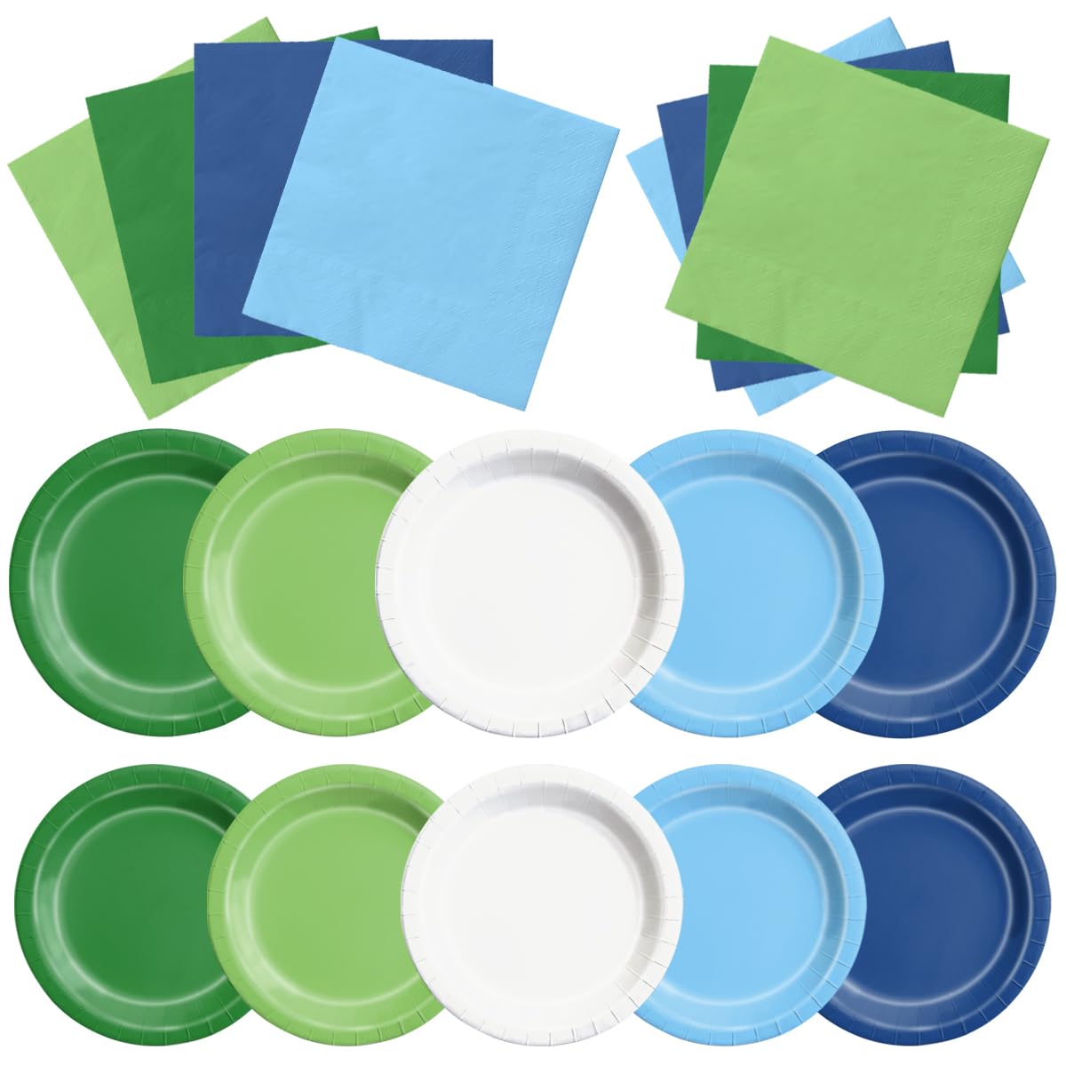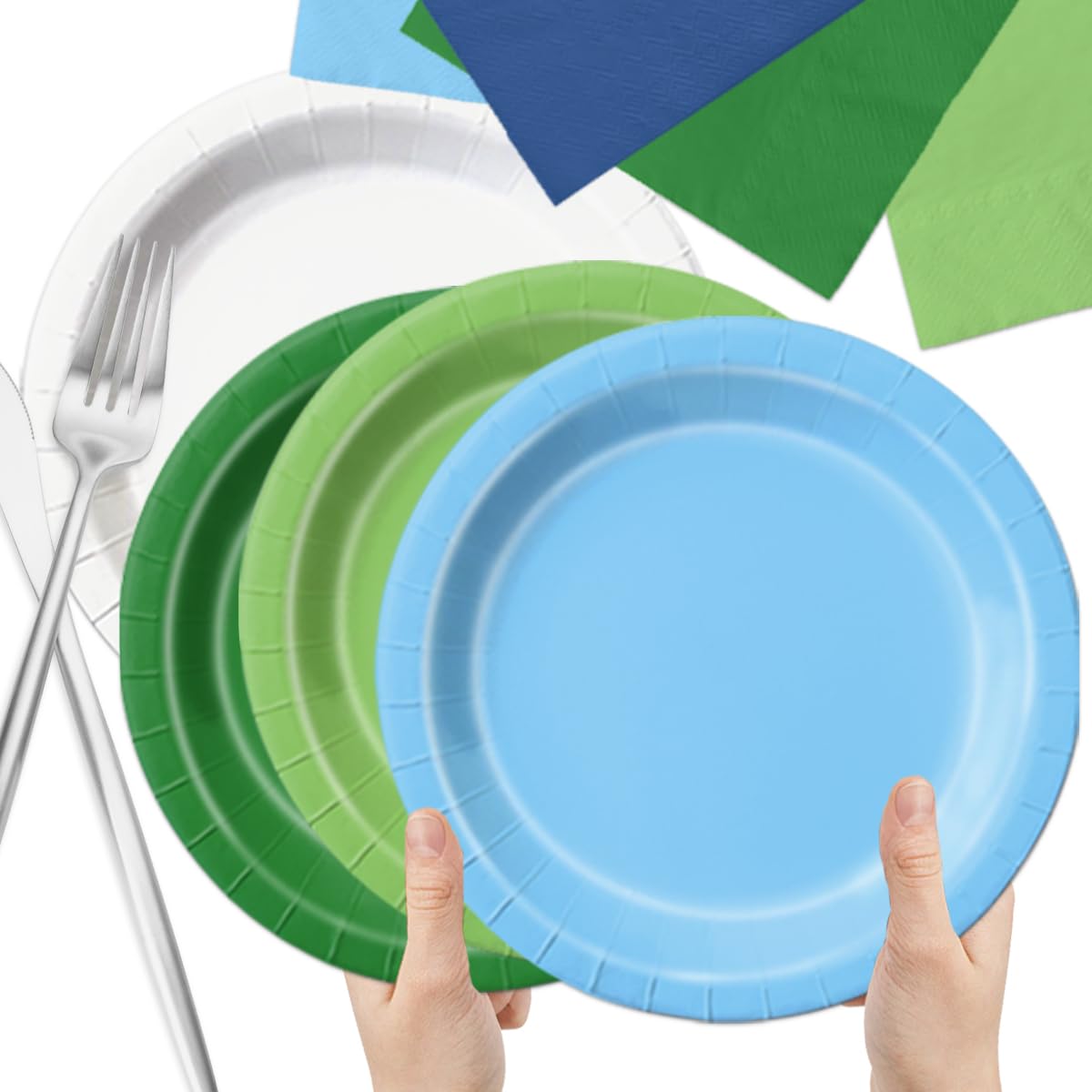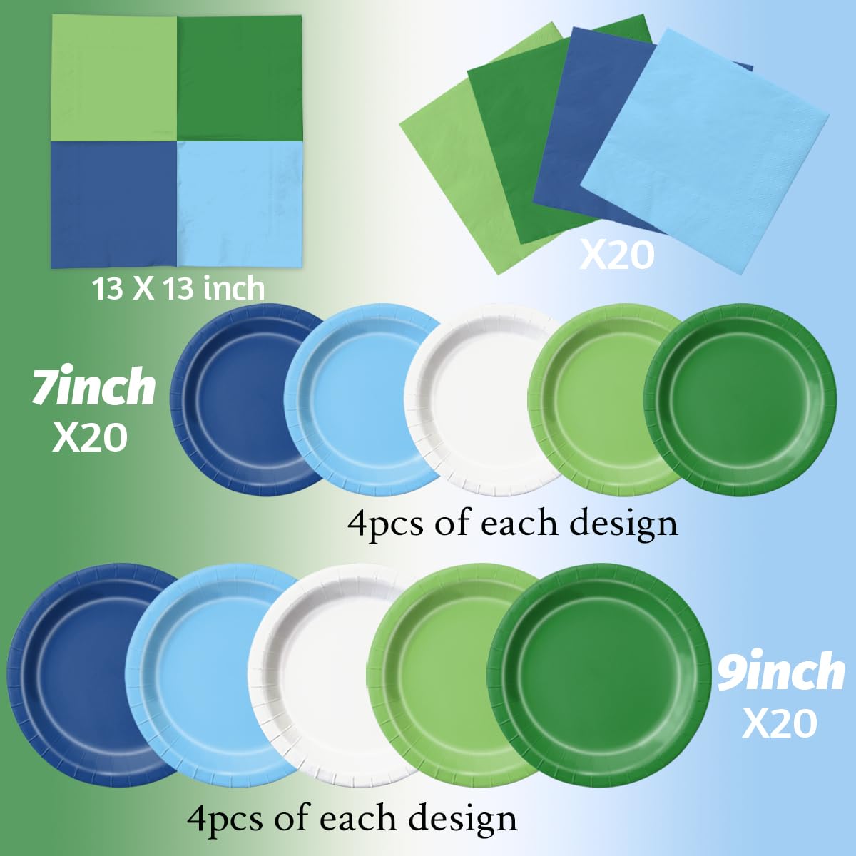 【DETAILS】You will get 60pcs blue & green party supplies,20pcs 9"plates,20pcs 7"plates and 20pcs napkins.They will bring a pleasant atmosphere to your party
