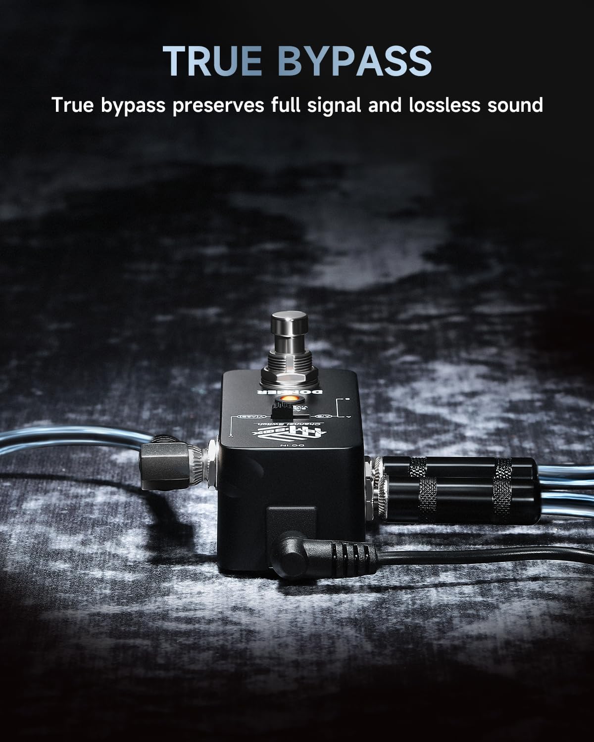 【True Bypass】The true bypass design provides a transparent tone. During transmission, the signal remains fully intact, passing through the effects pedal with no popping, buzzing, or electric noise, let alone the loss of strength and frequencies
