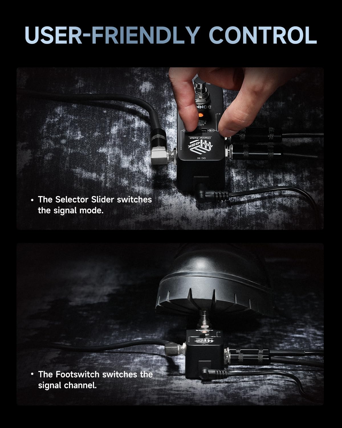 【ABY Signal Switch】Donner’s versatile ABY switch pedal can toggle one incoming signal to two separate outputs as well as in reverse, applicable for instruments like amplifiers, speakers, and pedalboard