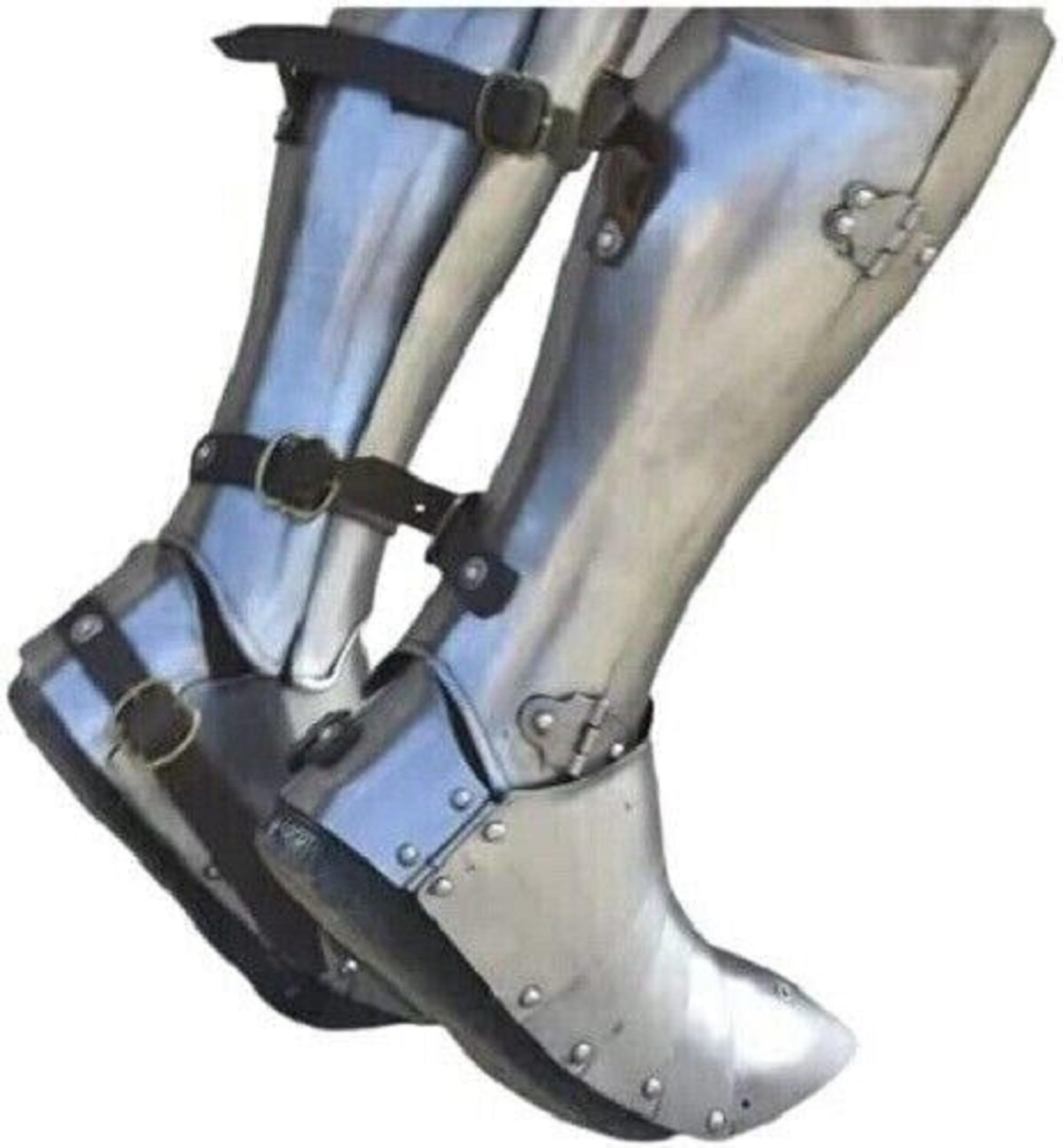 Description Description - Material used good quality 18 gauge steel Authentic Replica for Display, Wearable Role Play Costume Size - 16" Approx Standard Size and Wearable ( fits to all) Finishing as shown in picture Shoes are beautifully designed and easy to wear for LARP Costume