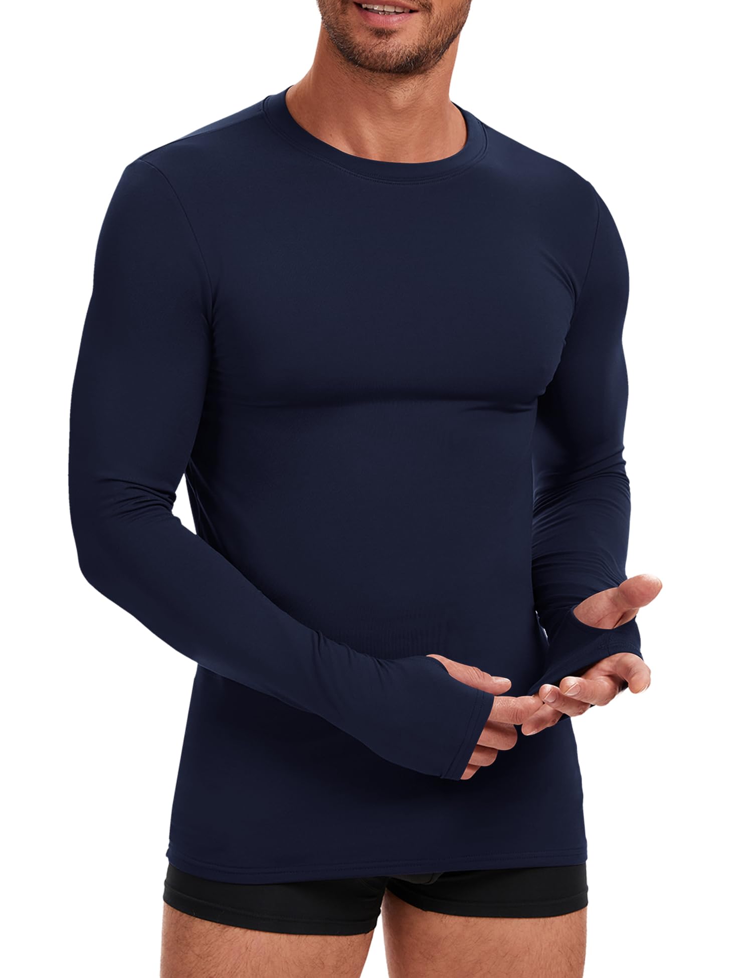 Classic Athletic Cut: Men's base layers shirts sit below your waist, cover your hip. With gentle compression, this mens running tops contour your body, provide the nearest warmth for the cold weather. Order size up for casual wear.