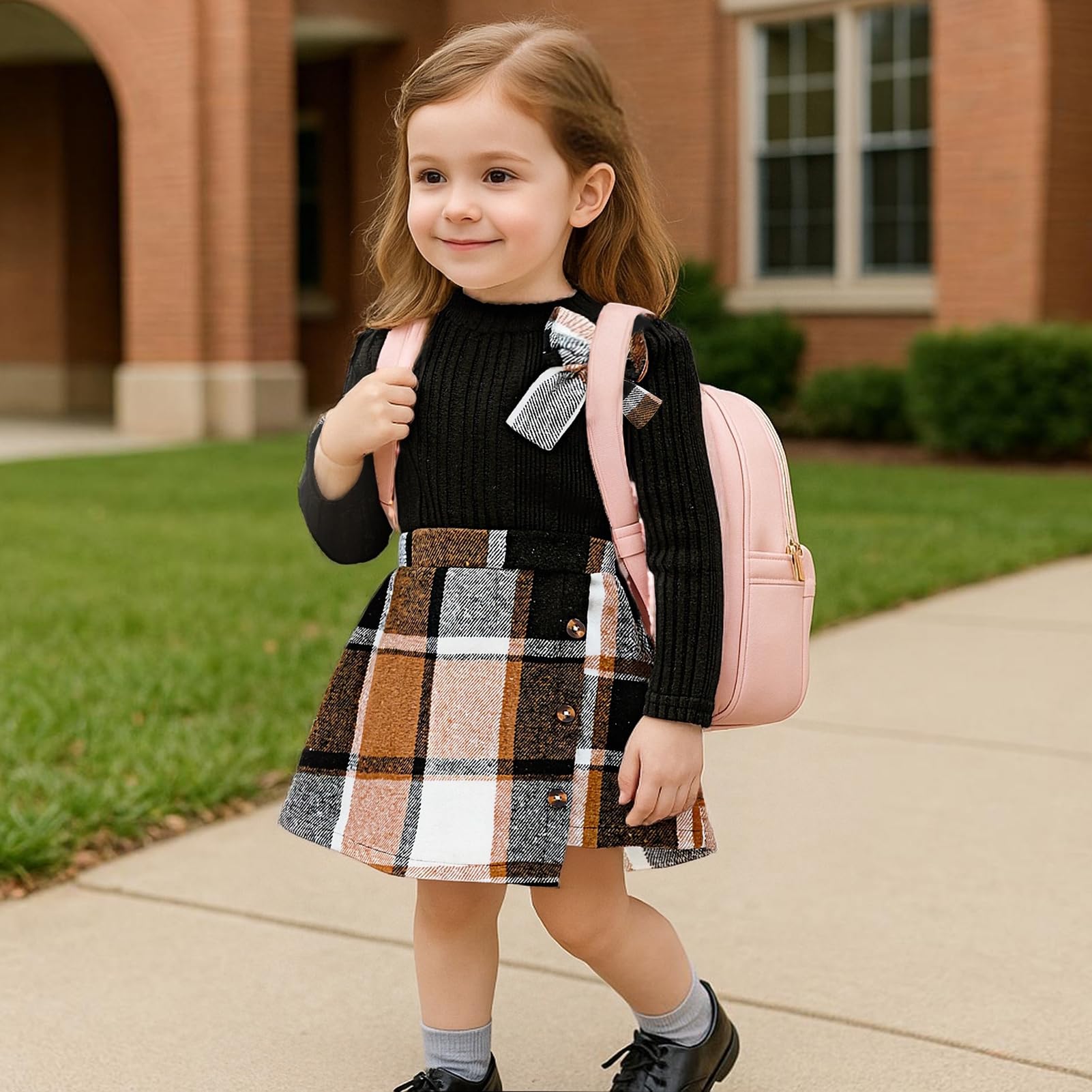 Design: Kids Little girl spring fall winter skirt set,knitted cotton long sleeve solid color top, button mini skirt with elastic waist , winter fashion warm toddler girls clothes outfits.