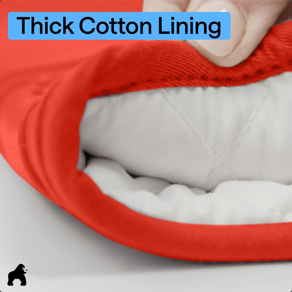 THICK COTTON LINING THROUGHOUT: stay comfortable while you cook; soft cotton lining offers additional protection and comfort, and feel simply amazing; plus, silicone is flexible and conforms easily to your unique grip