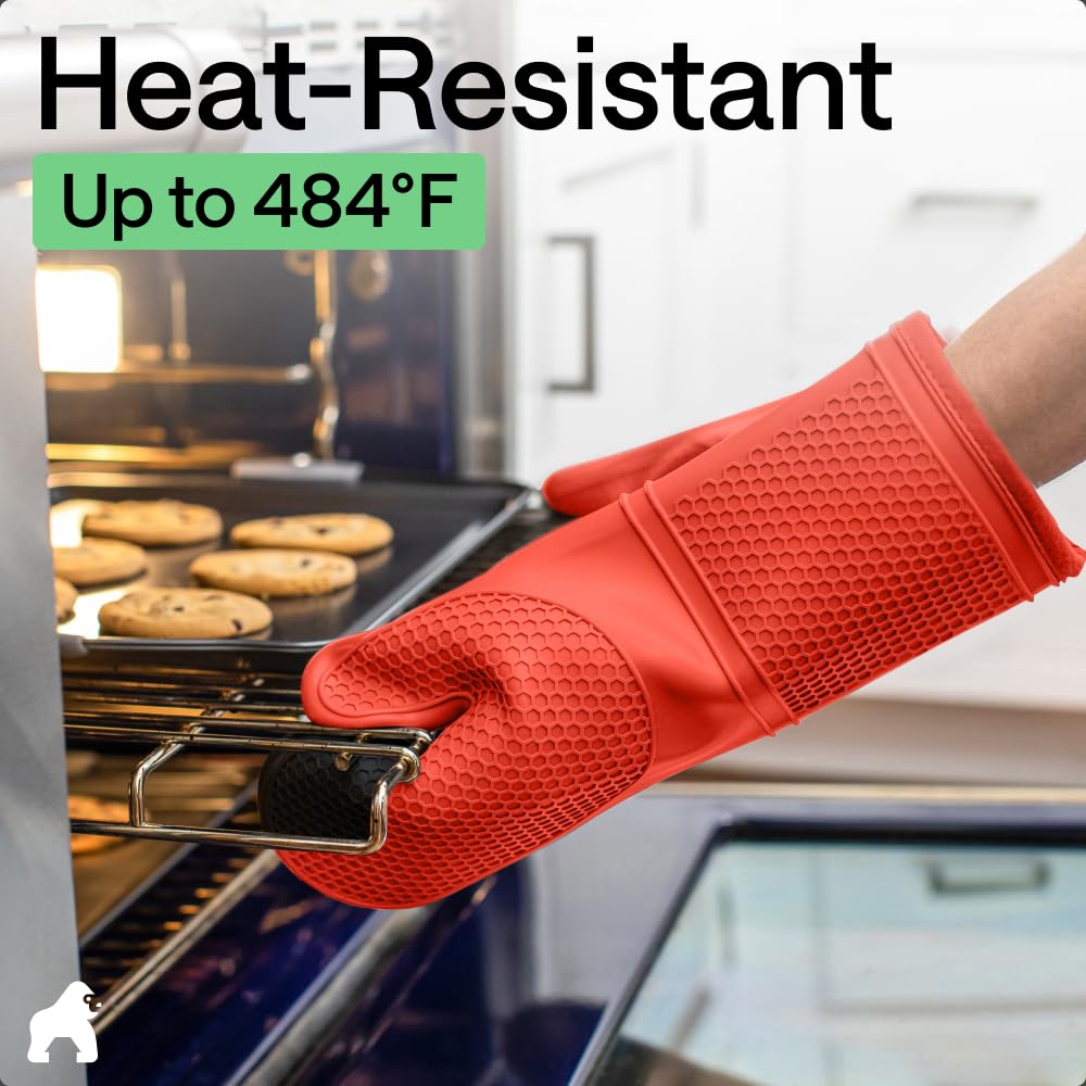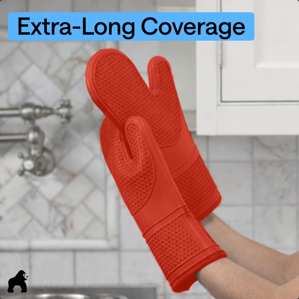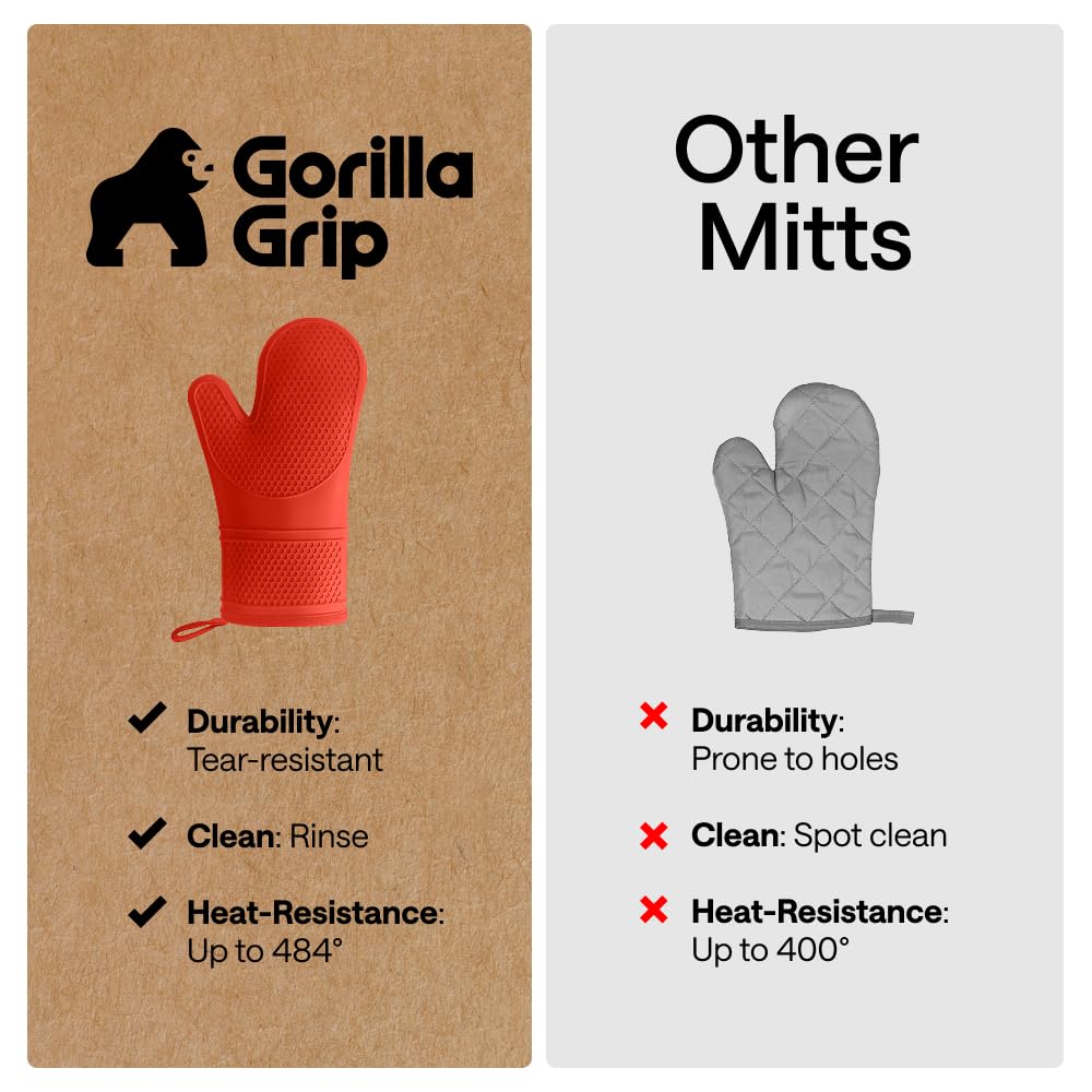WATERPROOF AND STAIN RESISTANT: no more constantly stained oven mitts; Gorilla Grip Silicone Mitts are both stain resistant and waterproof; spills can easily and instantly be rinsed away under water; hot liquids won’t soak through and scald your skin as they would with other materials