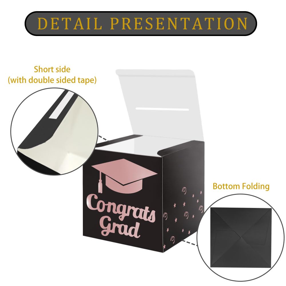 Attractive Design: The graduation card box is made of premium paper. And the box is designed with classic graduation elements and color. Very impressive