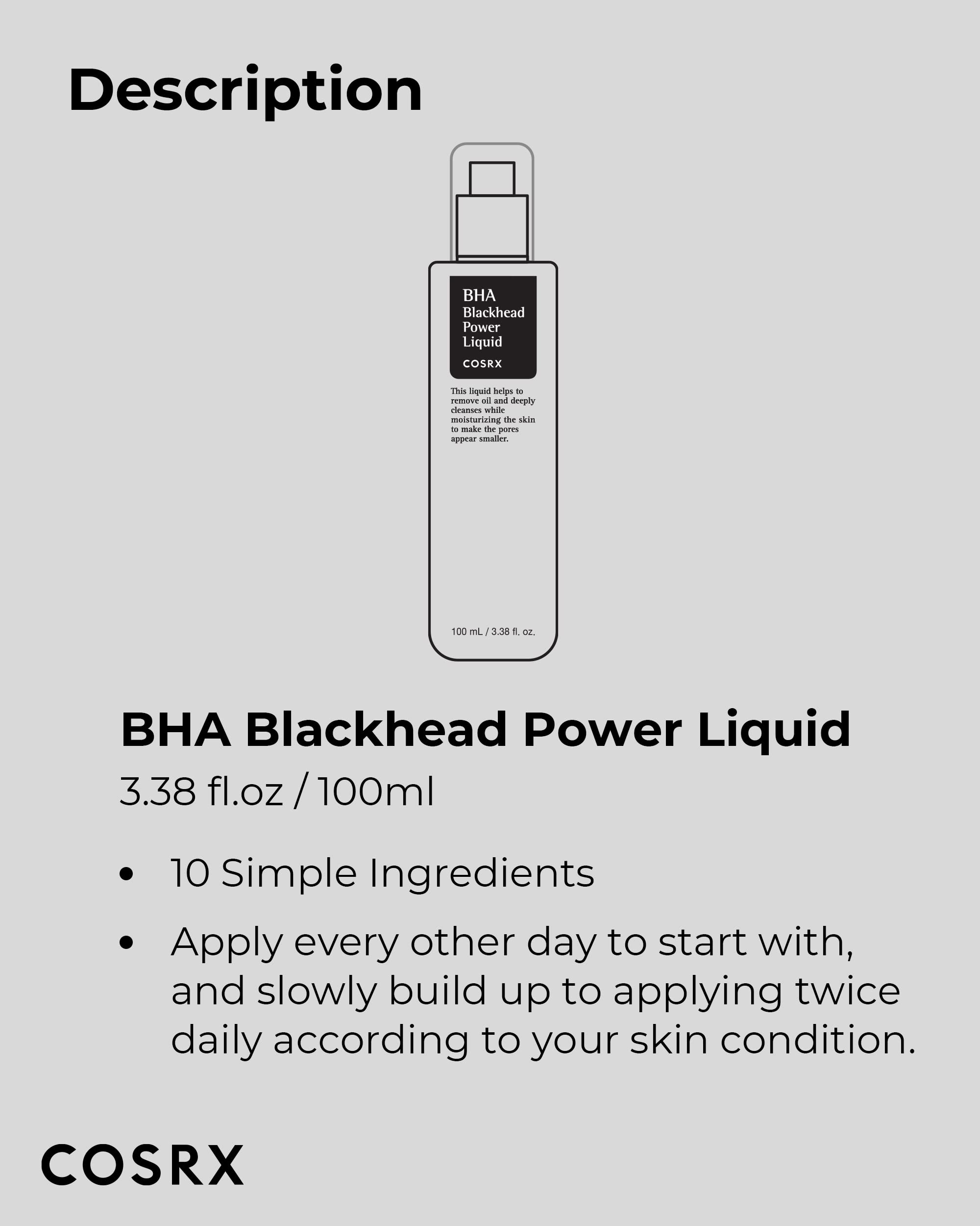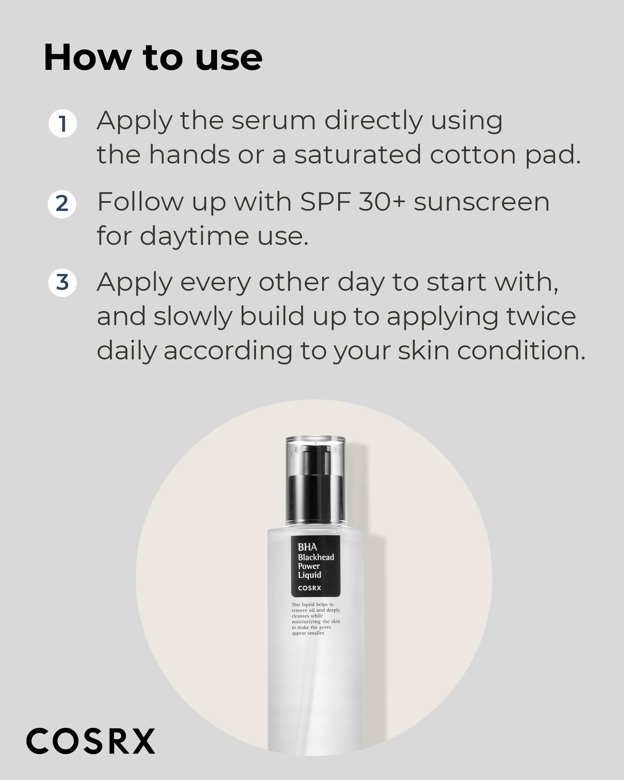CONGESTED PORES, BE GONE: BHA penetrates deeply into the pores and helps clear clogged pores and gently exfoliates dead skin cells, giving the skin its natural glow. An easy and simple way to prevent acne and blackheads.