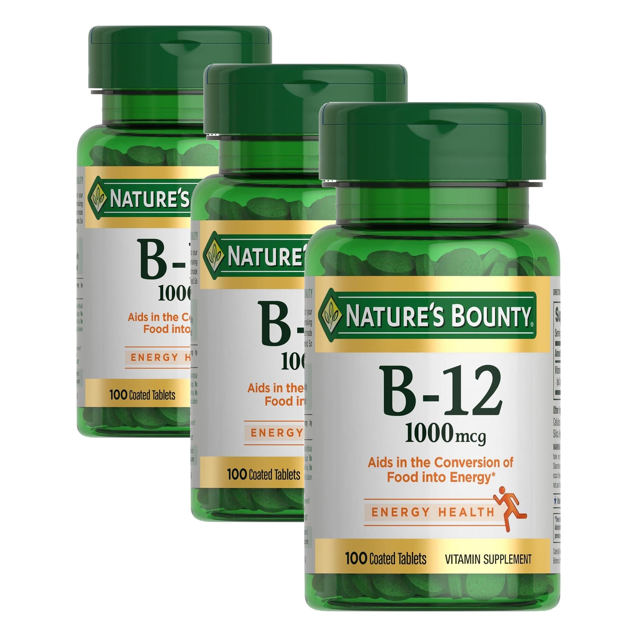 FOR ENERGY 100-count, Vitamin B-12 1000mcg Coated Tablets. Nature’s Bounty B-12 vitamins play an important role in energy metabolism in the body(1). They help the body convert food into the fuel which is used to produce cellular energy in the body(1).