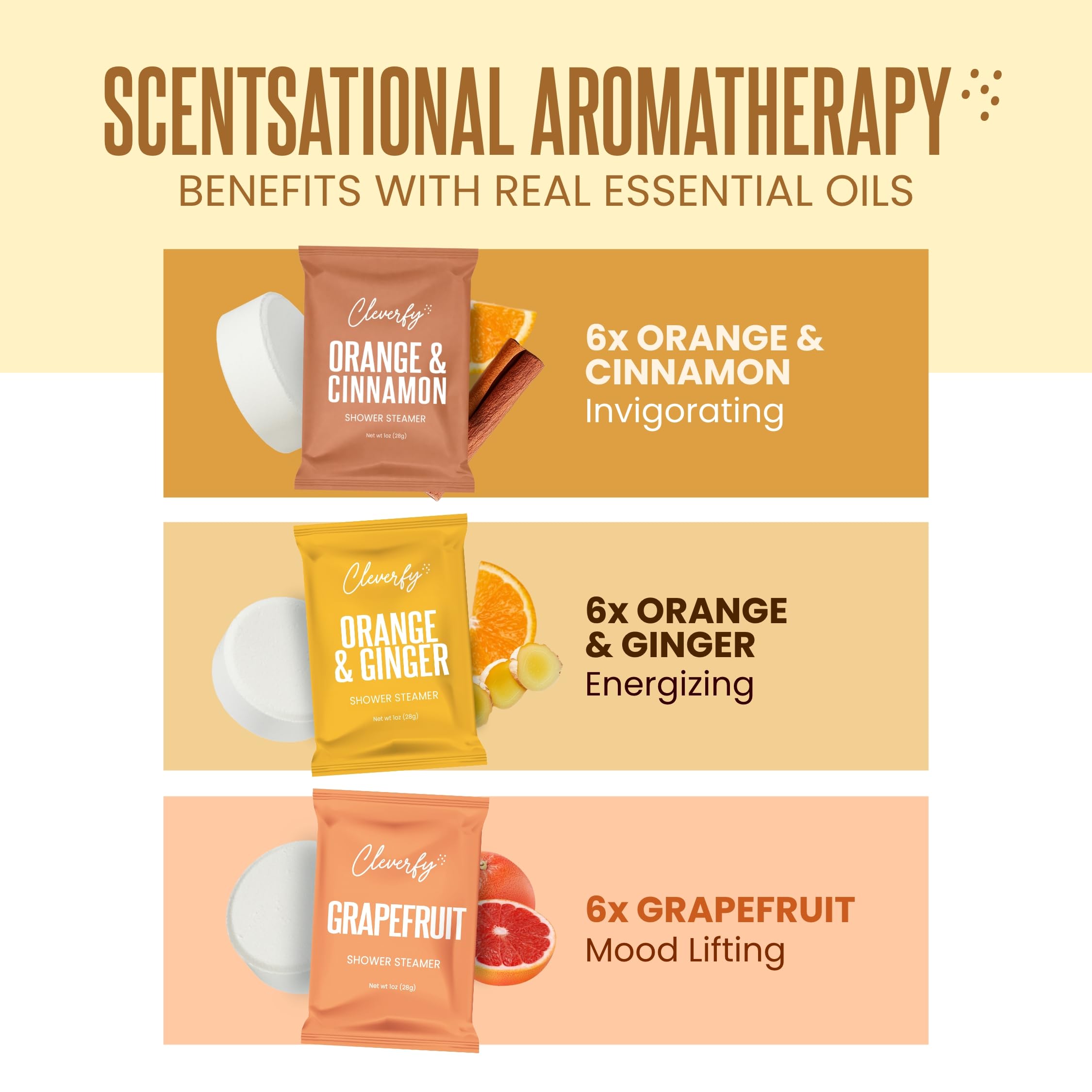 Scent-Sational: The "Energy Boost" 18-pack of shower steamer tablets features the energizing scents of 6x Grapefruit, 6x Orange & Cinnamon, and 6x Ginger & Orange. Select one and spoil yourself.