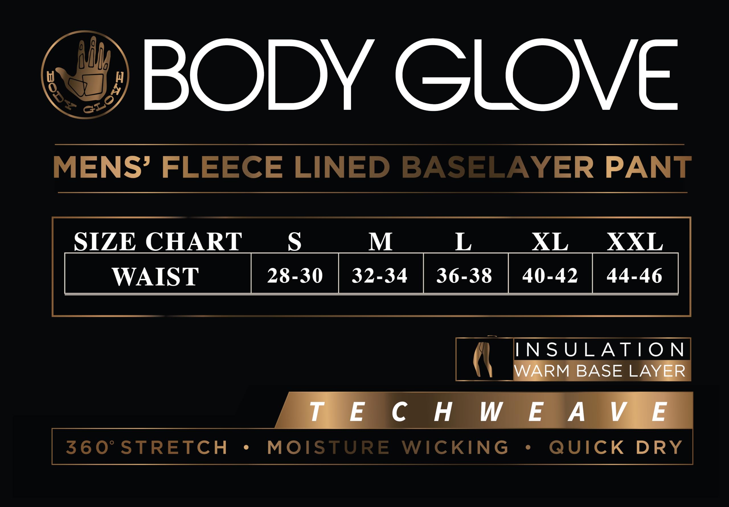 UNRESTRICTED MOVEMENT: Body Glove mens long underwear bottoms provide a flexible fit, allowing a full range of motion. Flexible and comfortable, our long john pants for men are ideal for layering in extreme conditions.