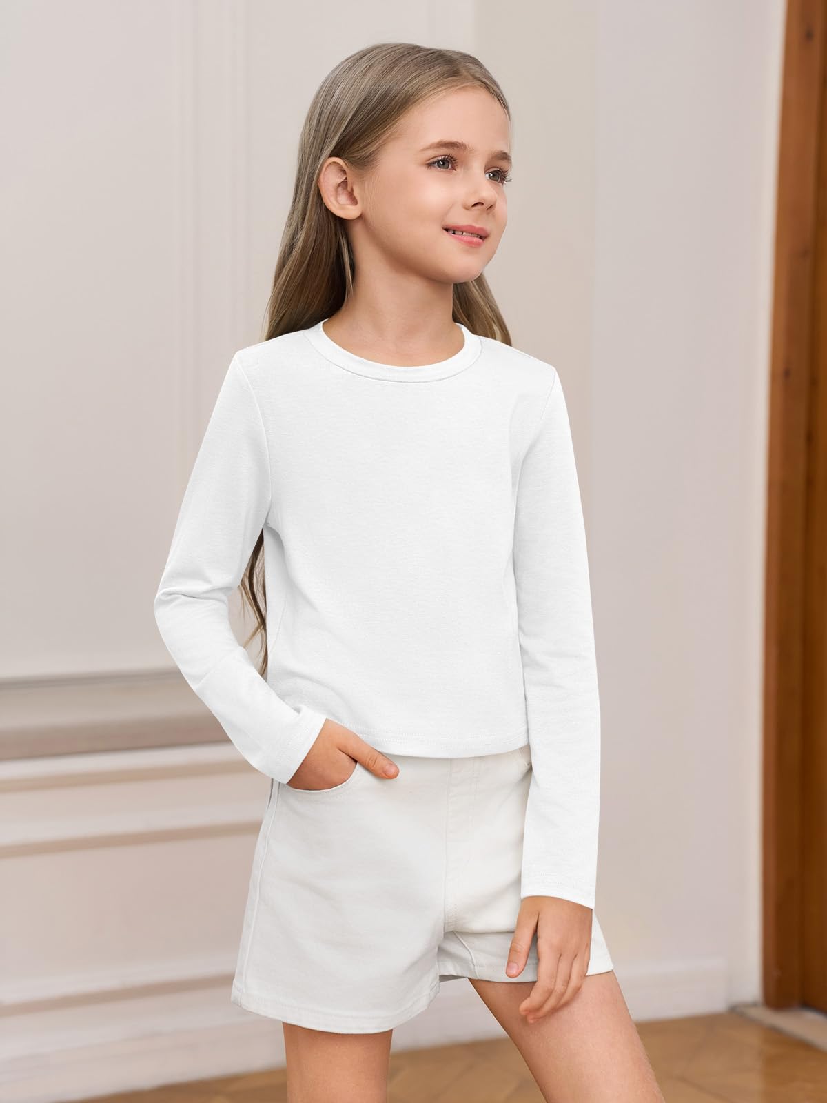 Basic Design: The kids cute shirts are feature with crew neck, cropped length, relaxed fit, long sleeves, solid color, and slim fit style. These girls blouses offer versatility and timeless sophistication