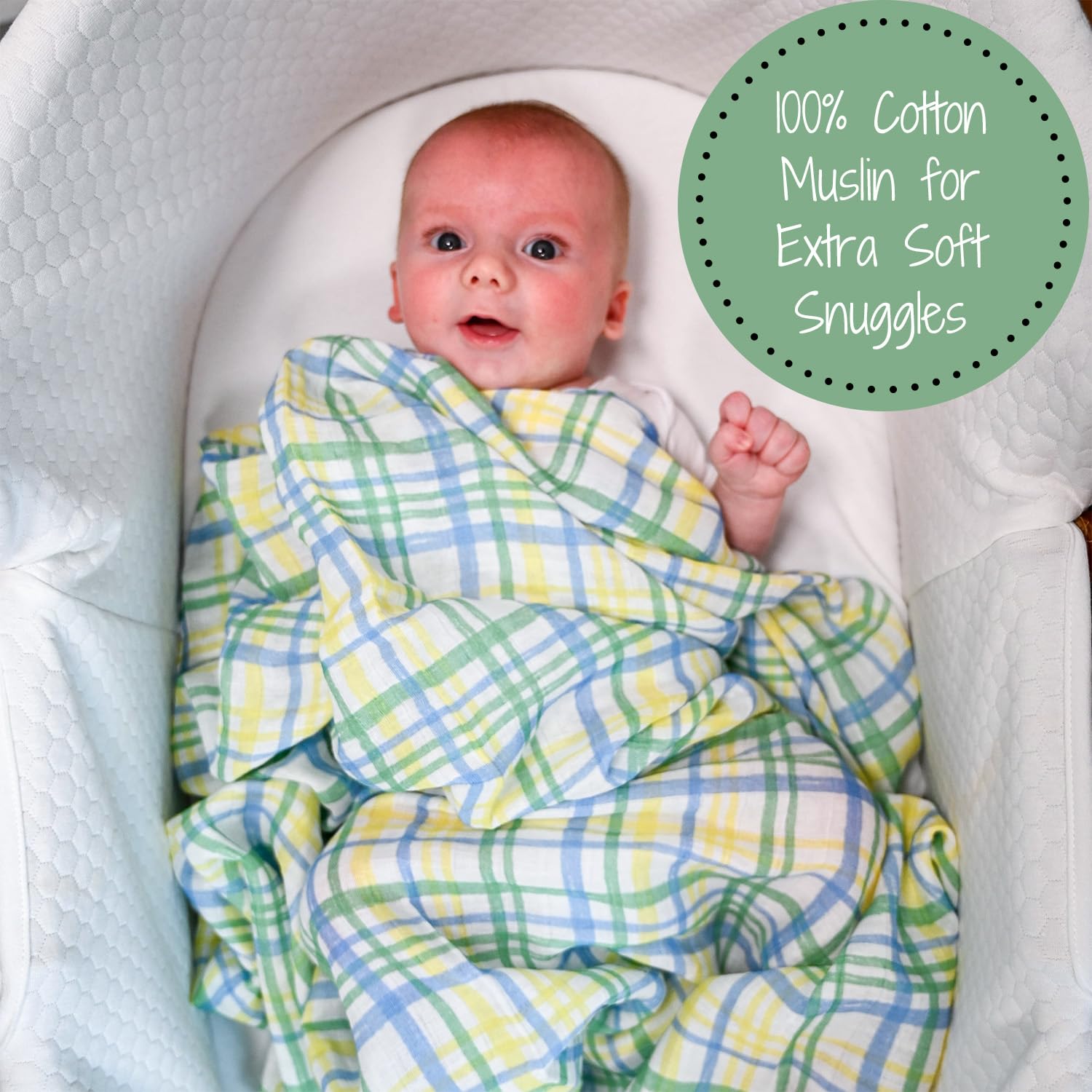 SOFT AND COZY BLANKET - Wrap your baby in our extra soft 100% cotton muslin swaddle blanket to make your baby feel safe and secure. Each 47x47 blanket provides enough space to snuggly and securely wrap your newborn.