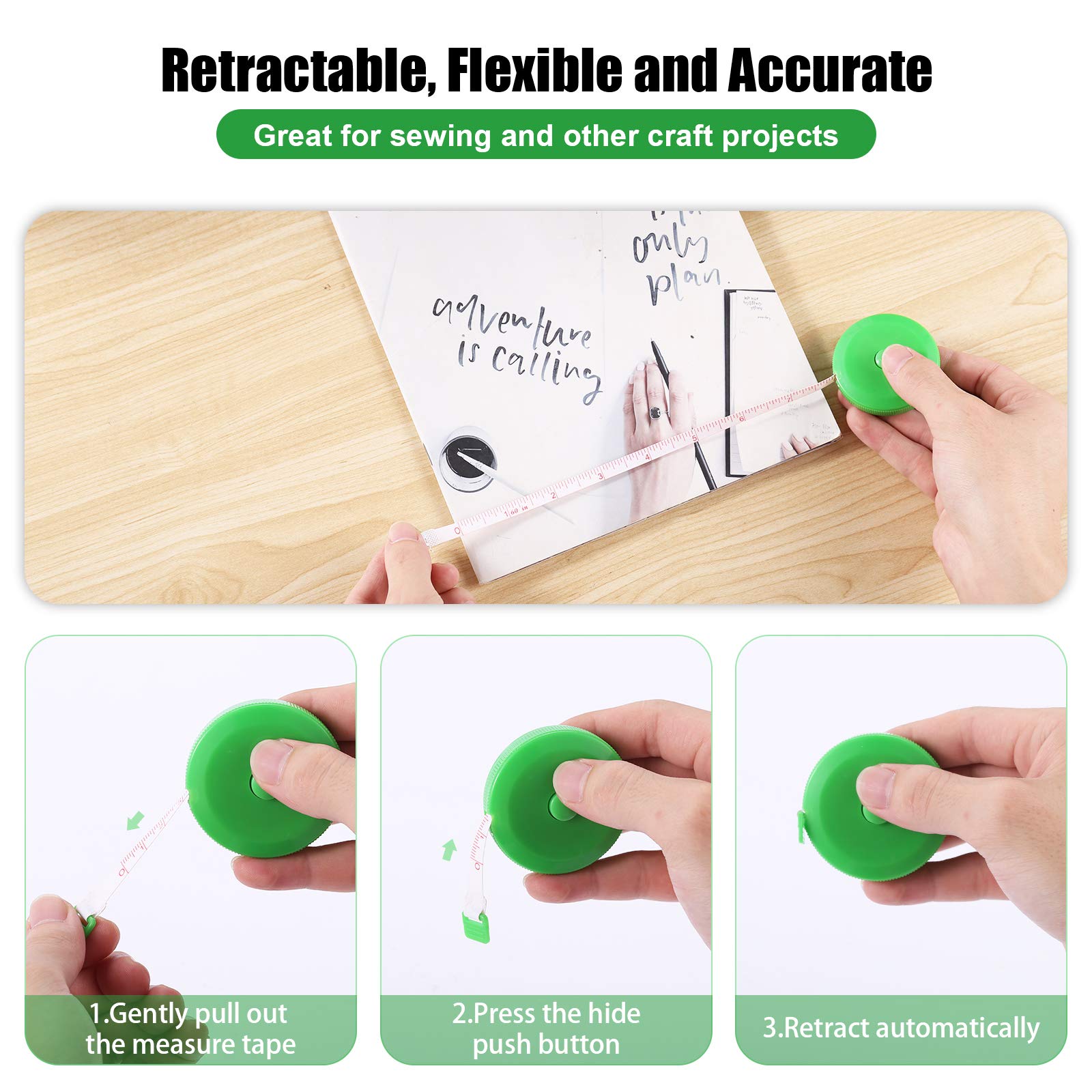 【Multipurpose】 Accurately and widely application for body measuring, sewing,handcraft,tailoring, ordering clothes online or measuring any curved surface.Great for keeping track of your health, assist in measuring waist measurement if you are keeping fit.For the family,they can be used to measure height and head circumference of kid’s growing .It's also great to have around the house for quick measurements.