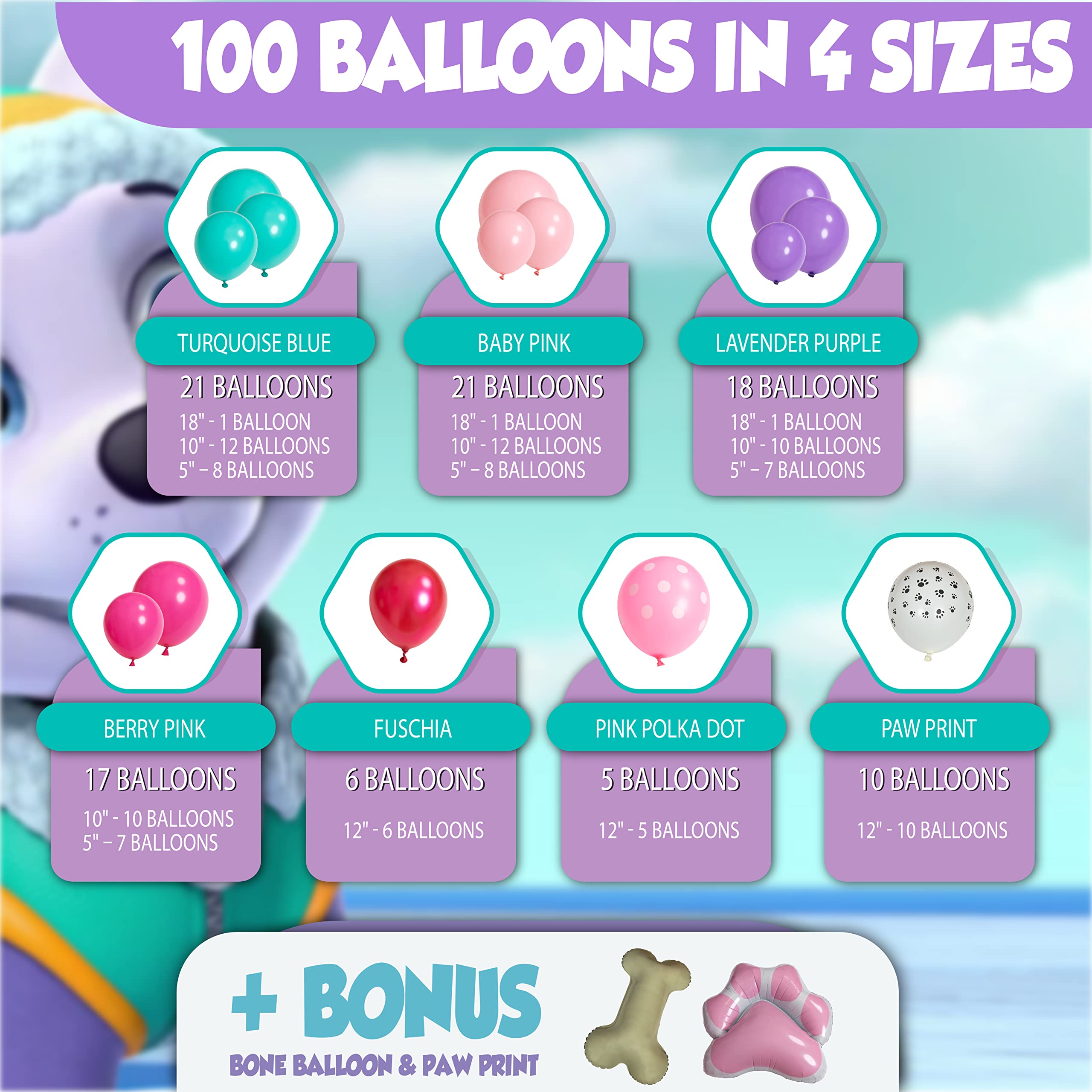 【EVERYTHING YOU NEED IN 1 KIT】Make your party come to life with a big beautiful balloon garland! Dress up your Paw Birthday Decorations or Paw Party Decorations with this Sky Paw Balloon Arch. Contains 100 turquoise, pink, purple, polka dot, and paw print balloons and accessories all in 1 Kit. PLUS, you get Step-by-Step Instructions for creating your Paw Girl Balloons. You will be shocked at how FAST and EASY it is to assemble, even if it’s your 1st time!