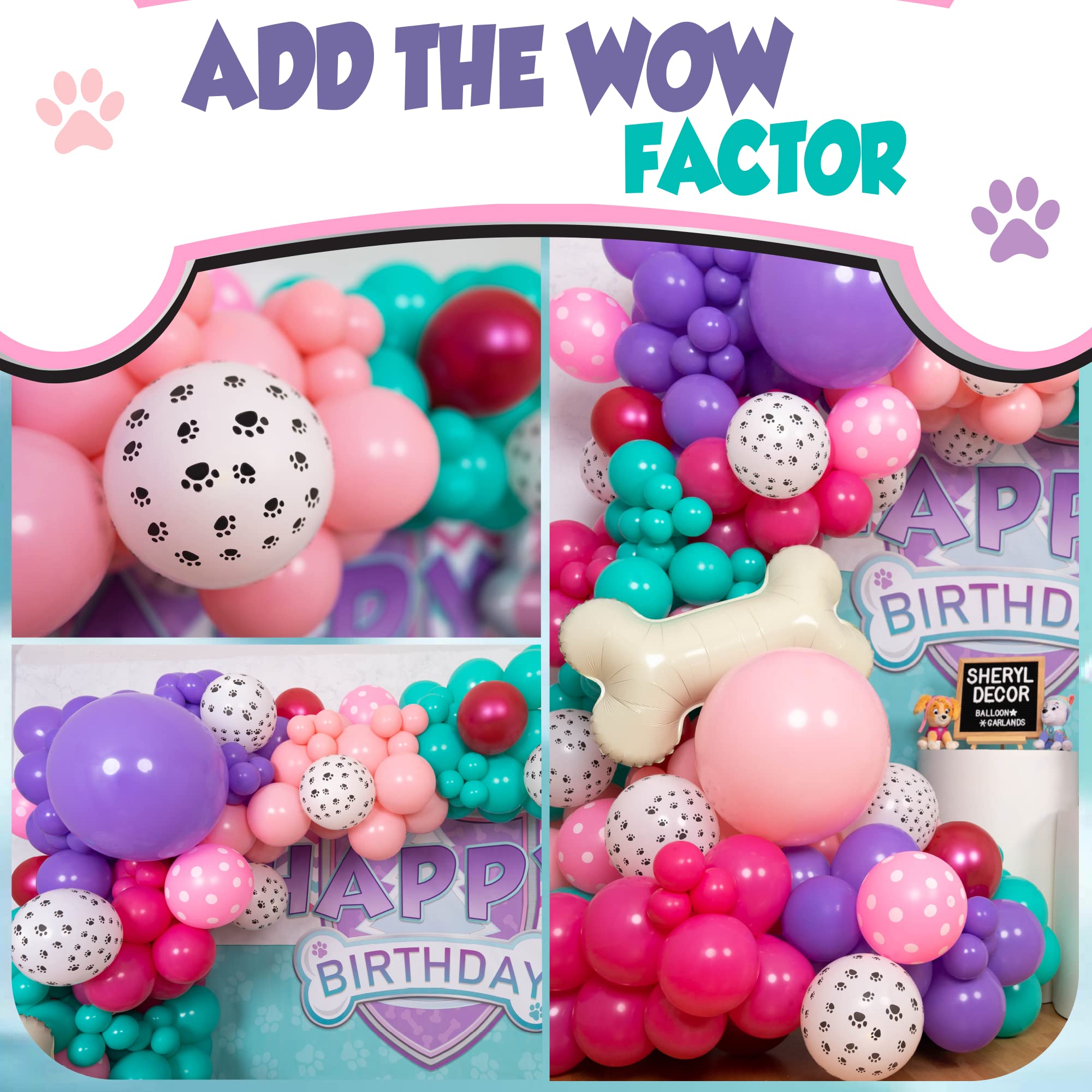 【BONUS DOG BONE & PAW BALLOONS!】Add that extra WOW factor by adding these MUST-HAVE Dog Bone & Paw Print Balloons to your Paw Girl Birthday Decorations. Your order also contains 30x small, 65x medium, and 5x large balloons. Each size contains various mixes of Turquoise Blue, Purple, Pink, Polka Dot, and Paw Print Balloons. Be ready to receive compliment after compliment and everyone saying… “How CUTE!!”