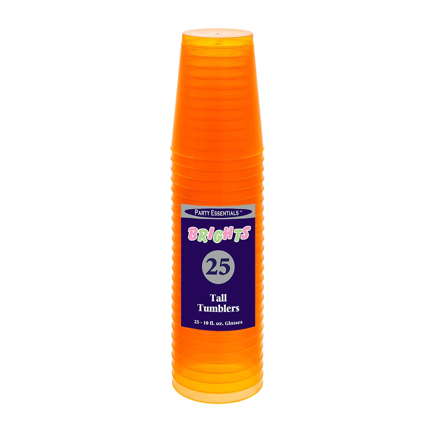 Each package includes 25 colorful neon tumblers ideal for cold beverages with no worries about broken glassware