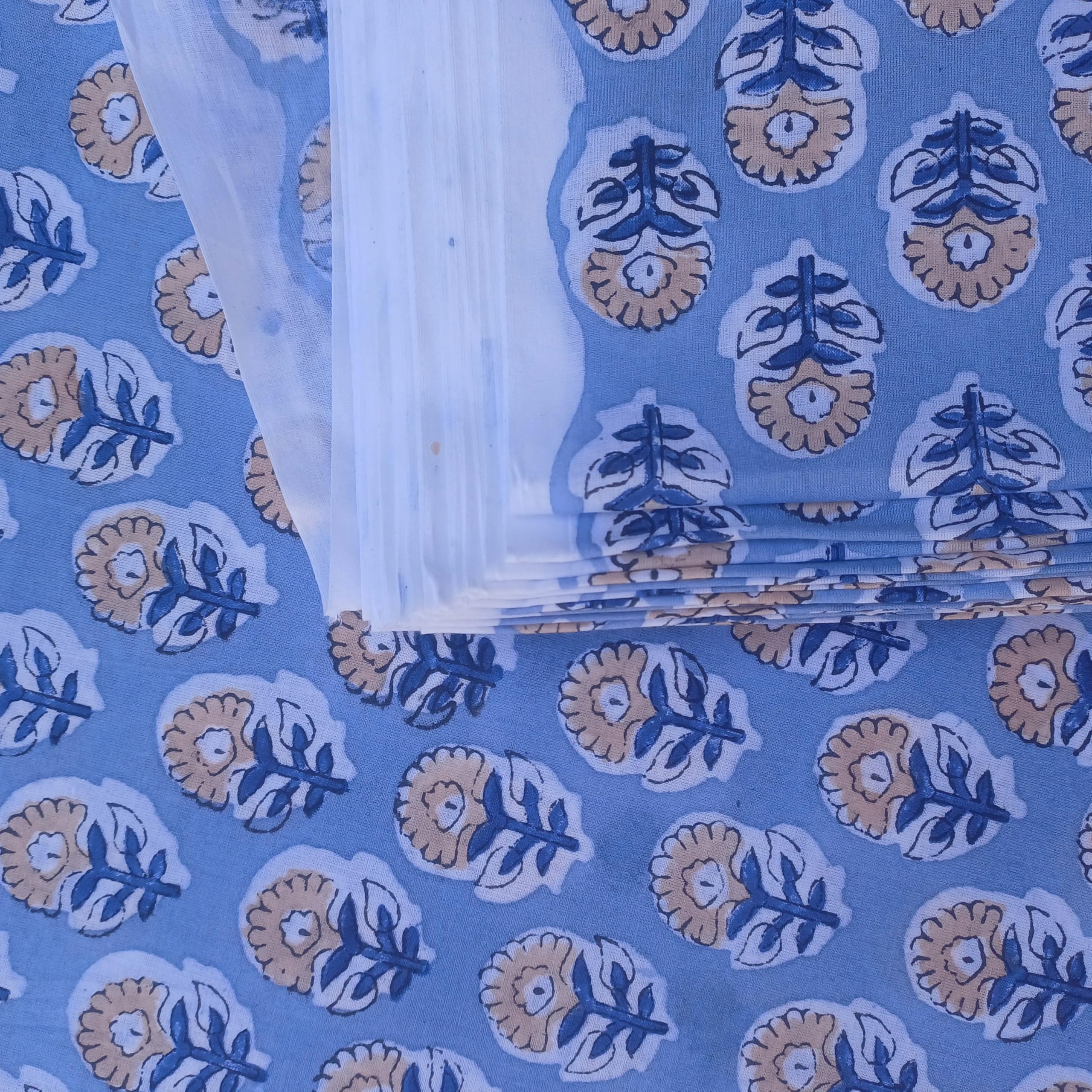 Feather soft cotton made block print fabric by yards. This fabric is hand crafted by the artisans of Rajasthan. This block print fabric by yards is available in all colors and block print floral designs. Use of vegetable dyes that are eco friendly and skin soft. You can use these in making dresses of block print fabric, napkins, dinner cloths, handkerchief, covers and wraps of block print and block print curtains and block print home decor. This Indian block print consists of floral prints that made on wooden blocks, and then dipped in dye and hand pressed on the fabric. The fabric itself is ultra light and breathable having the properties of cool nature. It is good to go with any color matching as it has plesant block printing color. Super soft and ultra light breathable block print fabric Dyed of Natural vegetable colors without any chemicals Multicolors available in block print fabric. Fabrics measured in yards, 44 inch wide Slight color variation due to hand printing COtton voile fabric, Indian block print. Dress Making, Sewing, Crafting, Napkins, Beachwears, Sarong, Pareo, Scarf/ Scarves, Kaftan, Kurtis, Tops, DIY Prjects and much more.