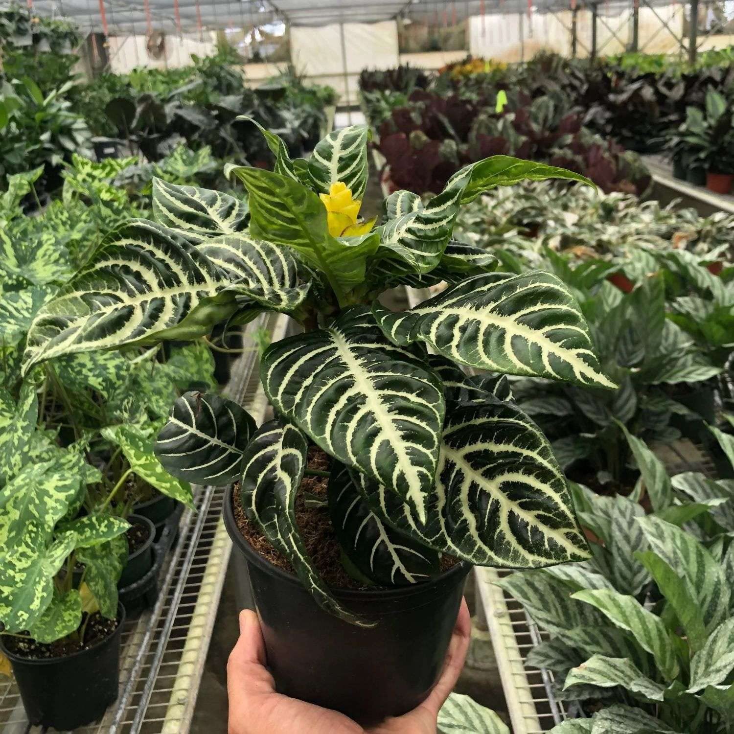APHELANDRA SQUARROSA! Water your zebra plant when the top 25% of soil is dry. Your zebra plant requires a high humidity level of 60-70%. Your zebra plant prefers temperatures at 65°F and above to thrive. Avoid cold drafts and sudden temperature changes.