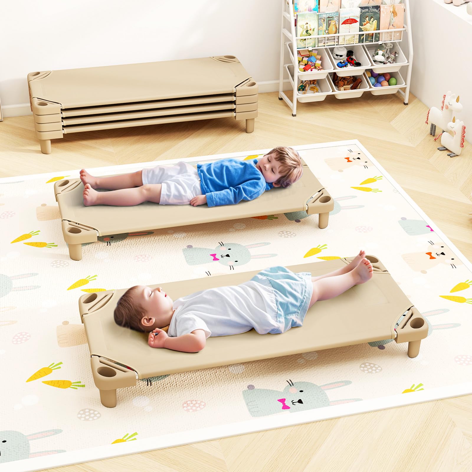 Space-Saving Stacking Design: Perfect for daycare centers, preschools, or even at home, the kiddie cots can be stacked up to 17”. Whether you need to accommodate multiple children in the classroom or simply want to store the cots when not in use, their stackable design makes it easy.