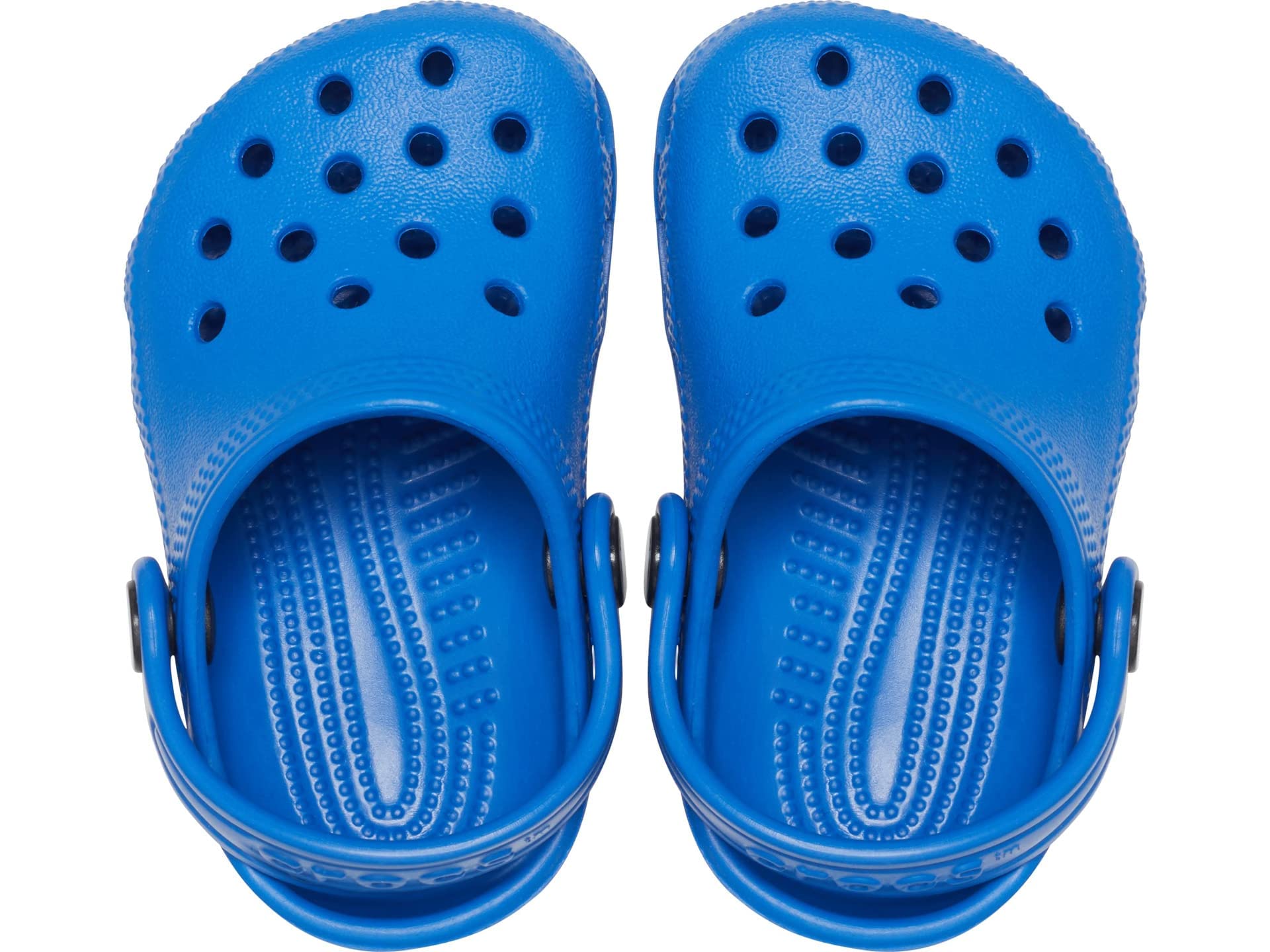 Description Start your little one out on the right foot with the Crocs Kids Classic Littles Clogs. EVA construction. Slip-on design. Pivoting heel straps for a more secure fit. Iconic Crocs Comfort: Lightweight. Flexible. 360-degree comfort. Non-marking outsole. Find Your Size: We recommend sizing up (e.g. if you are a 7.5, size up to an 8)