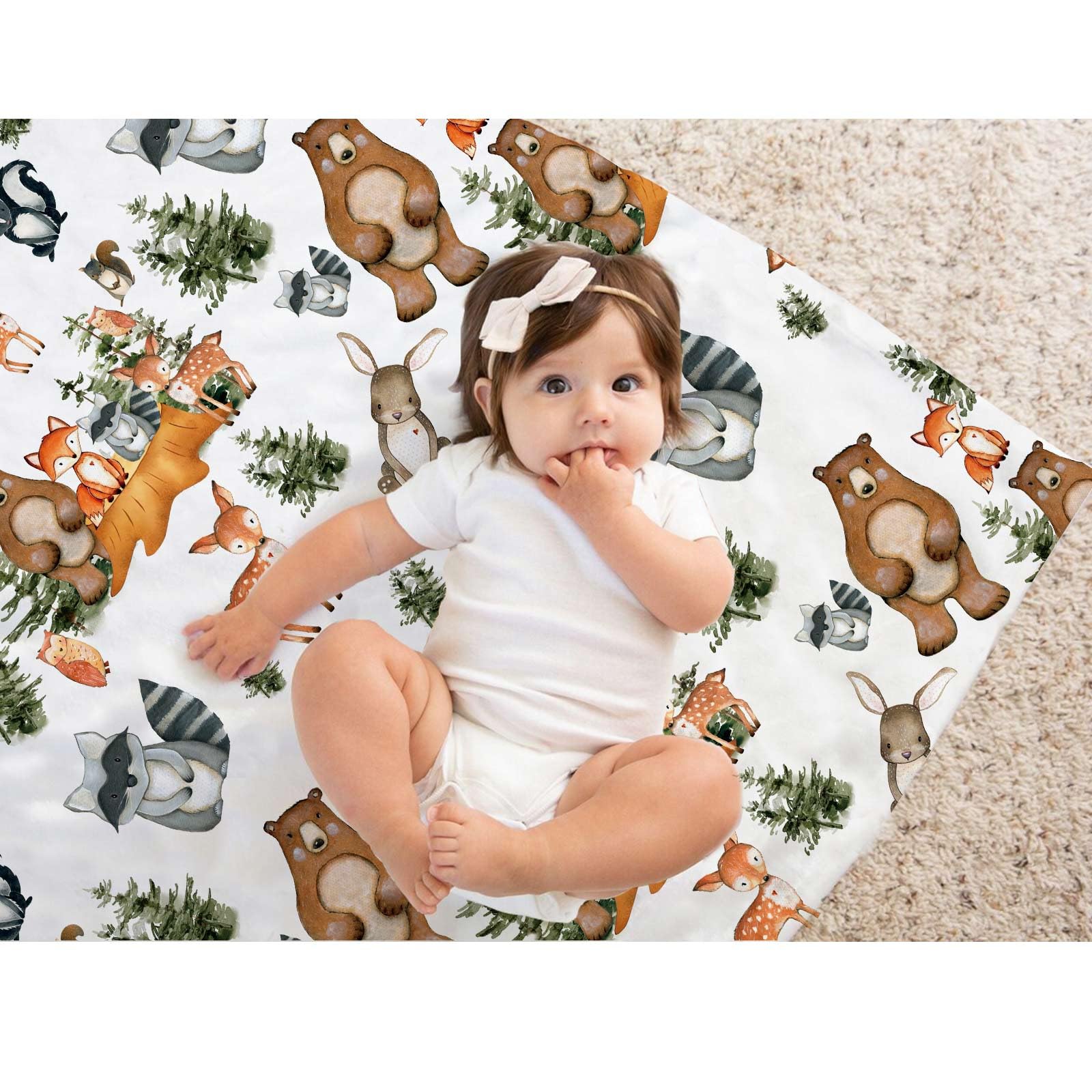 Woodland Baby Blankets for Unisex Boys Girls, Soft Nursery Minky Blankets with Double Layer Dotted Backing, Toddler Baby Crib Stroller Swaddle Shower Gifts, Forest Animals Receiving Blankets, 30"x40"