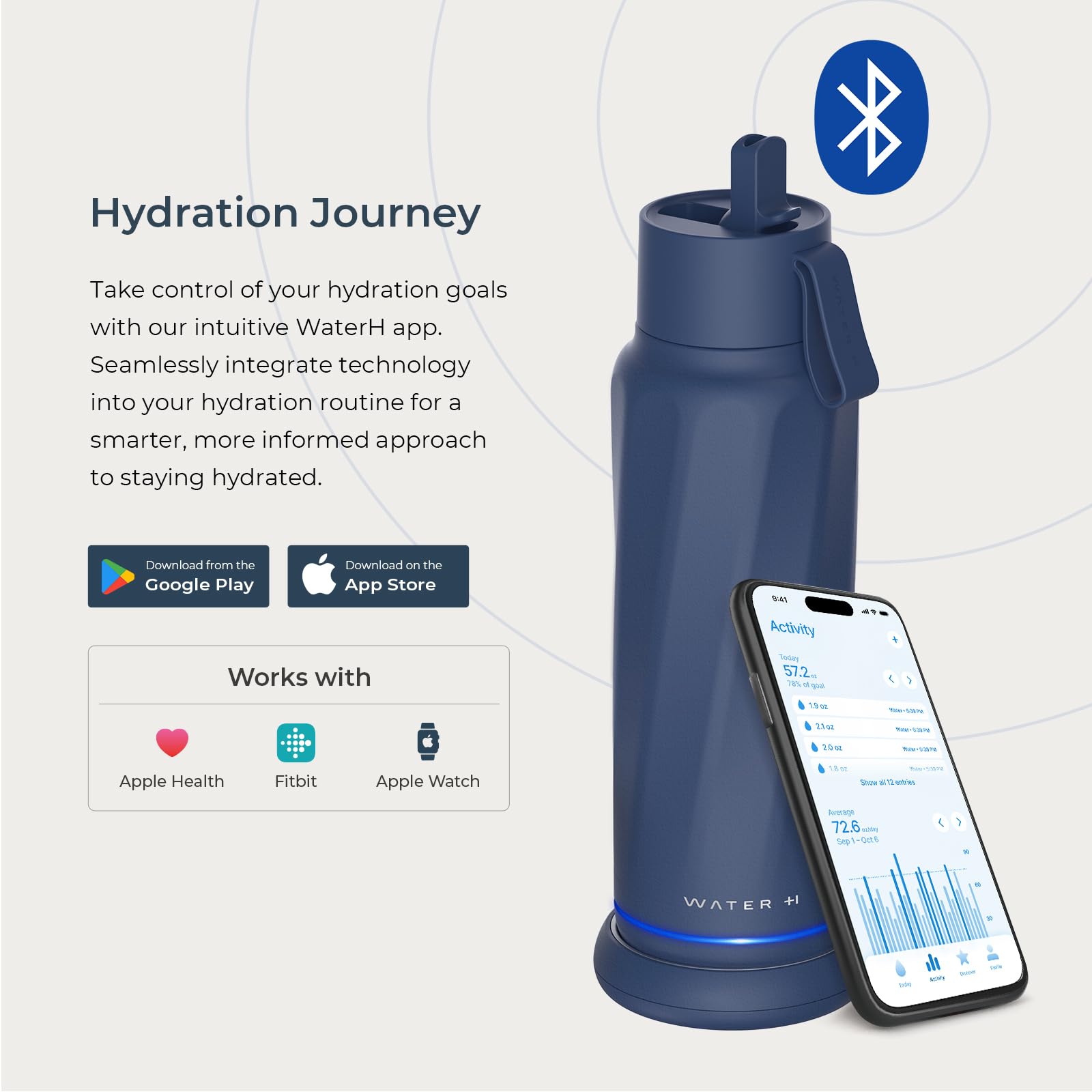 ๐๐๐ซ๐ฌ๐จ๐ง๐๐ฅ๐ข๐ณ๐๐ ๐๐ฒ๐๐ซ๐๐ญ๐ข๐จ๐ง ๐๐จ๐๐ฅ๐ฌ & ๐๐ซ๐๐๐ค๐ข๐ง๐ : Connect to the app in minutes to customize your hydration goal and monitor your real-time progress. Seamlessly sync your water intake, ideal for those managing weight loss, heart conditions, or liver issues that require strict hydration control.