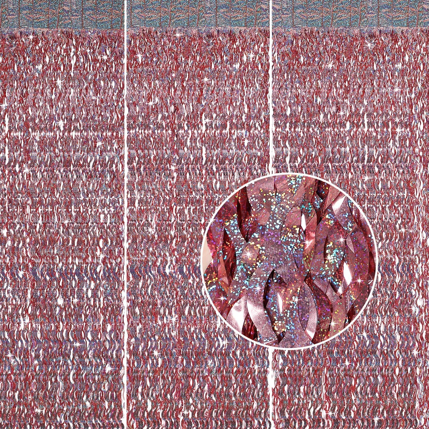 Packing Included: 3 packs rose gold tinsel foil fringe curtains party photo backdrop,Each pack curtains size is 3.3ft x 6.6ft, enough length for decorate your party
