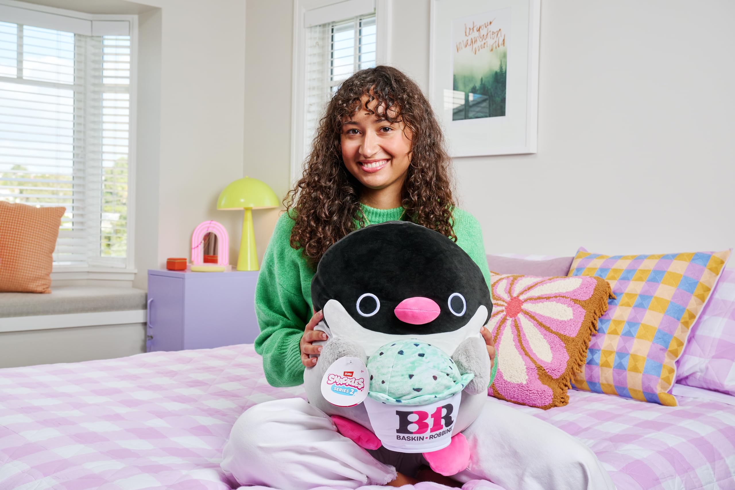 Snackles are the super soft ultra squeezable plush that comes paired with your favorite mini brands made squishy! Satisfy your craving for cuddles with this cuddly 16 inch plush! Each Snackle comes with a little description to tell you all about your new plushy pal! Don’t go hungry, there's 10 new Snackles to collect! Will you find the Hersheys Shark or maybe the Krispy Kreme Axolotl? Hunt for your favorite tasty pairing with Snackles!