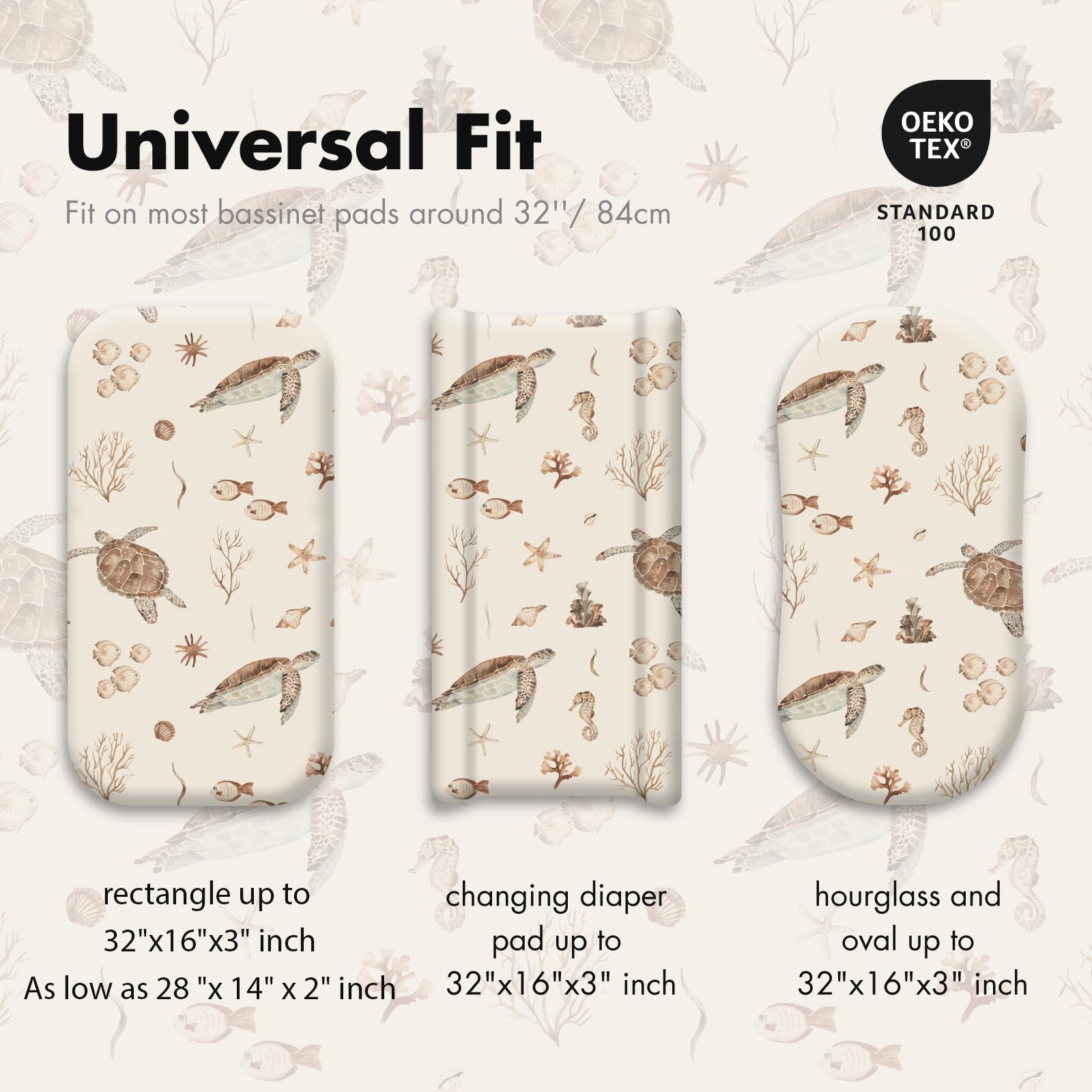 SUPER SOFT FABRIC: Our bassinet sheets are made from super soft and breathable fabric that feels great against babyβs skin. The full elastic band ensures a secure fit around the standard bassinet mattress, preventing slipping and providing a comfortable, stable sleeping space for your baby. Rest assured, every product meets the OEKO-TEX Standard 100 for safety