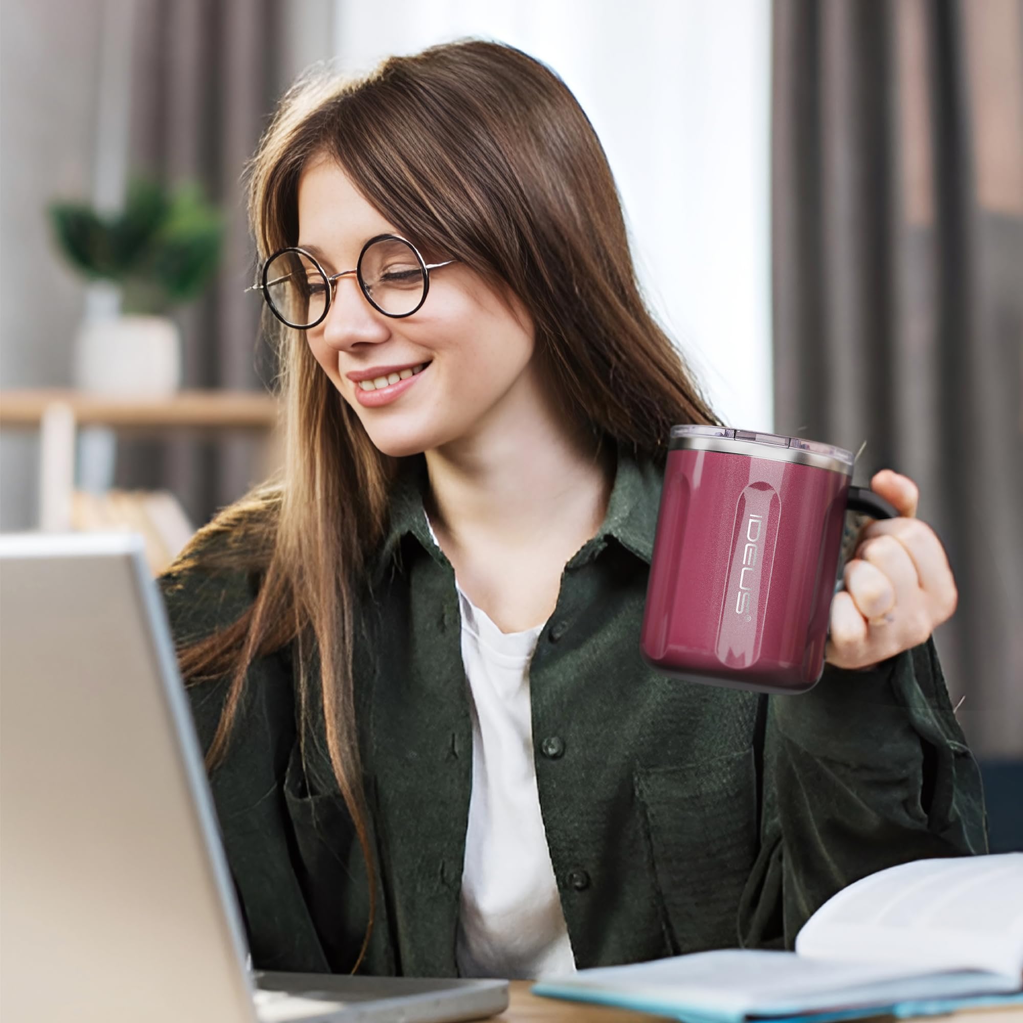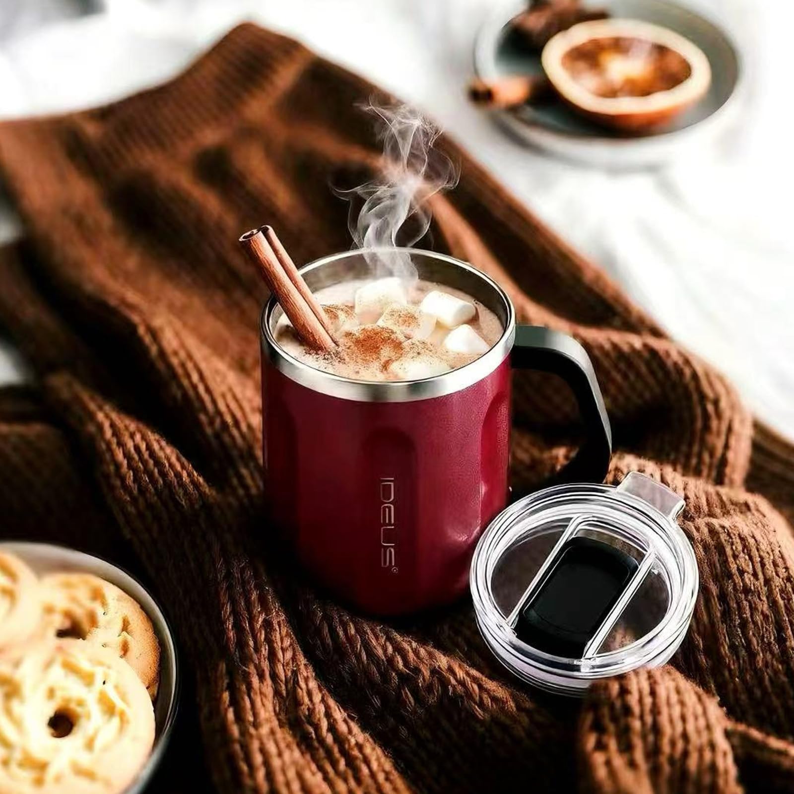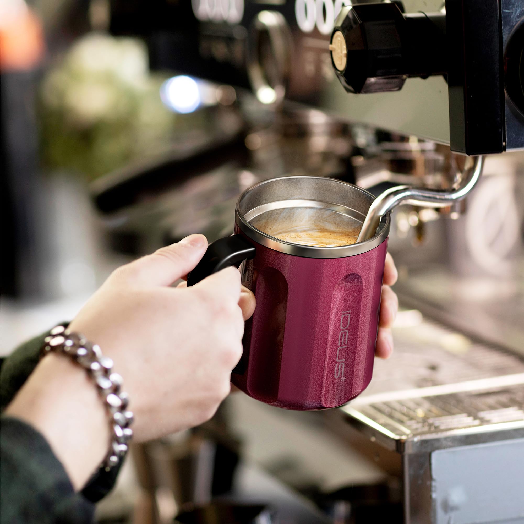 SAFE AND DURABLE - The IDEUS coffee mug with lid βis constructed from SUS 304 18/8 stainless steel, premium silicone, and Tritan-copolyester. We really believe that using top-notch materials is the key to giving you an awesome drinking experience.