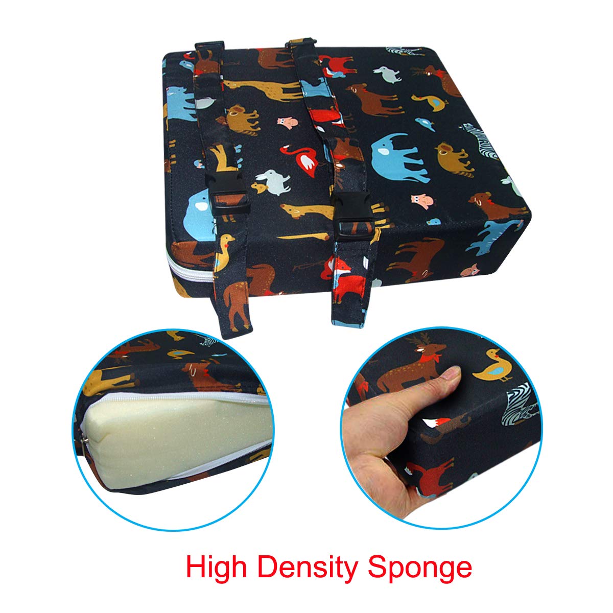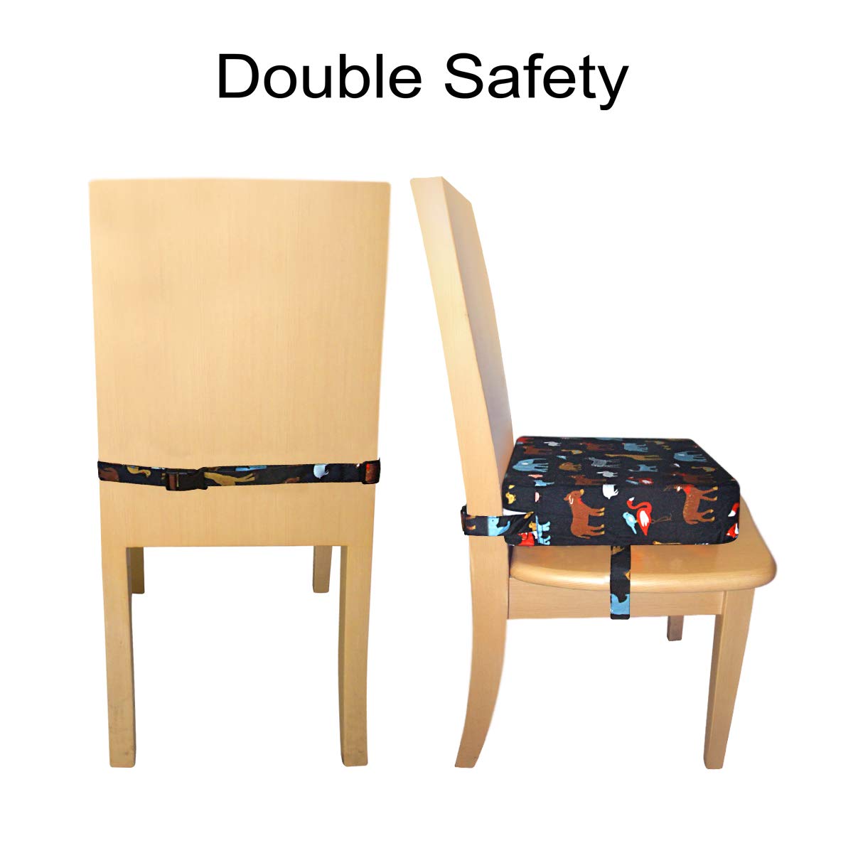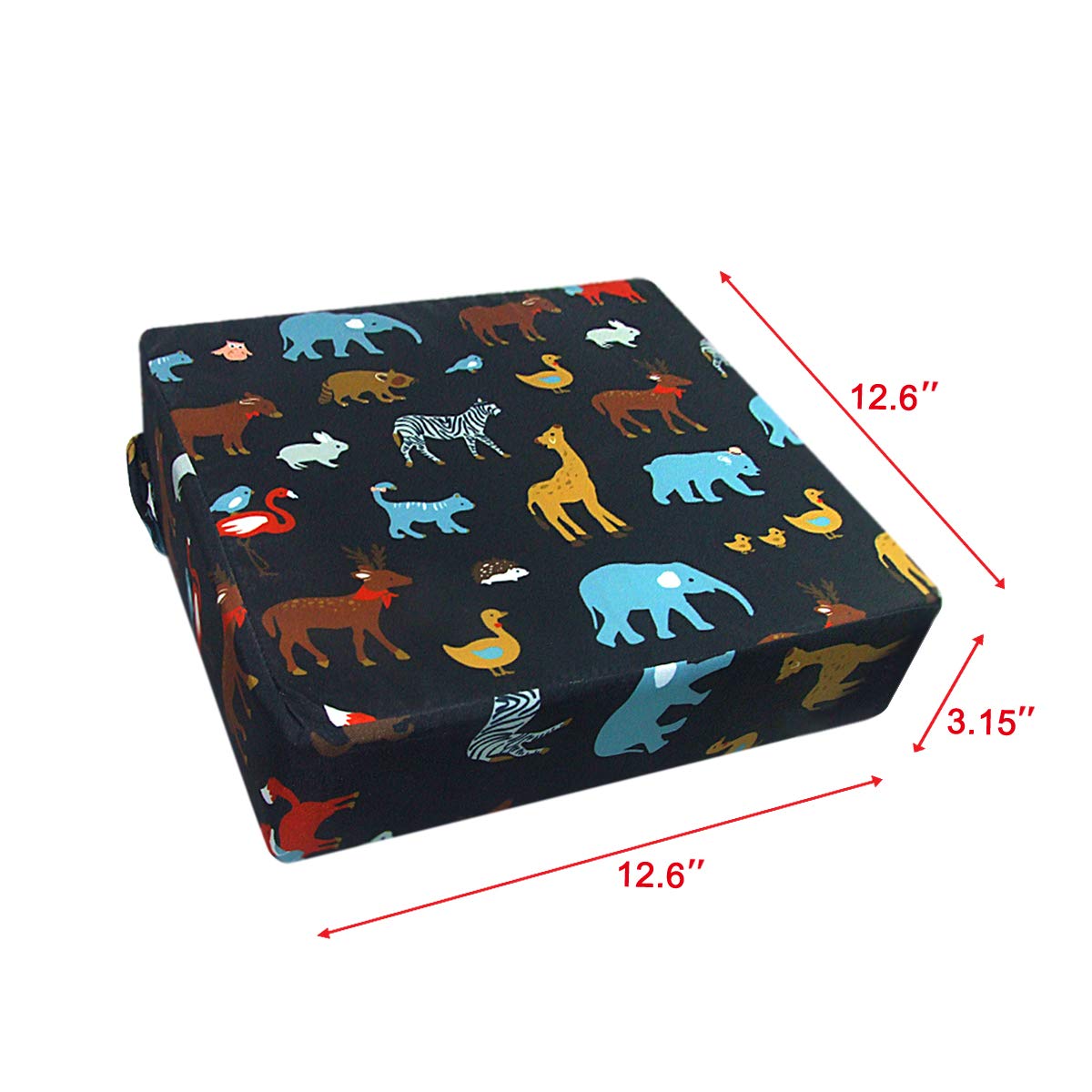 Dimensions: 12.6"L x 3.1"H x 12.6"W, fit most of dining chairs. It can be used for toddler children old who can sit unaided at a table to enjoy the meal with family together. Also can used for children writing, drawing and play toys.