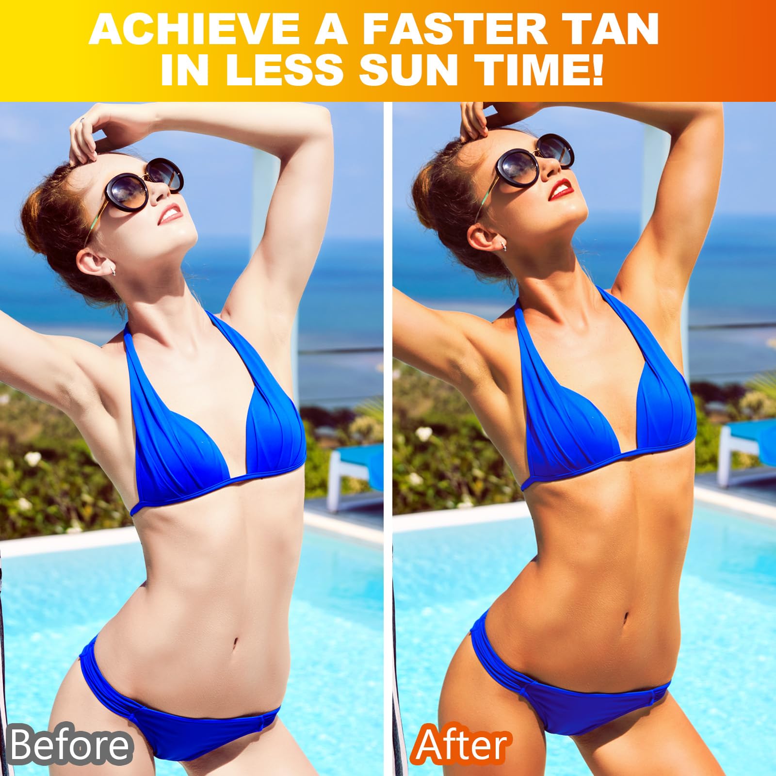 【Easy Application】- Apply this tanning lotion to clean, dry skin before sun exposure, massaging gently for optimal absorption. Caution: Avoid midday sun exposure. Apply SPF prior to our tanning oil for UV protection