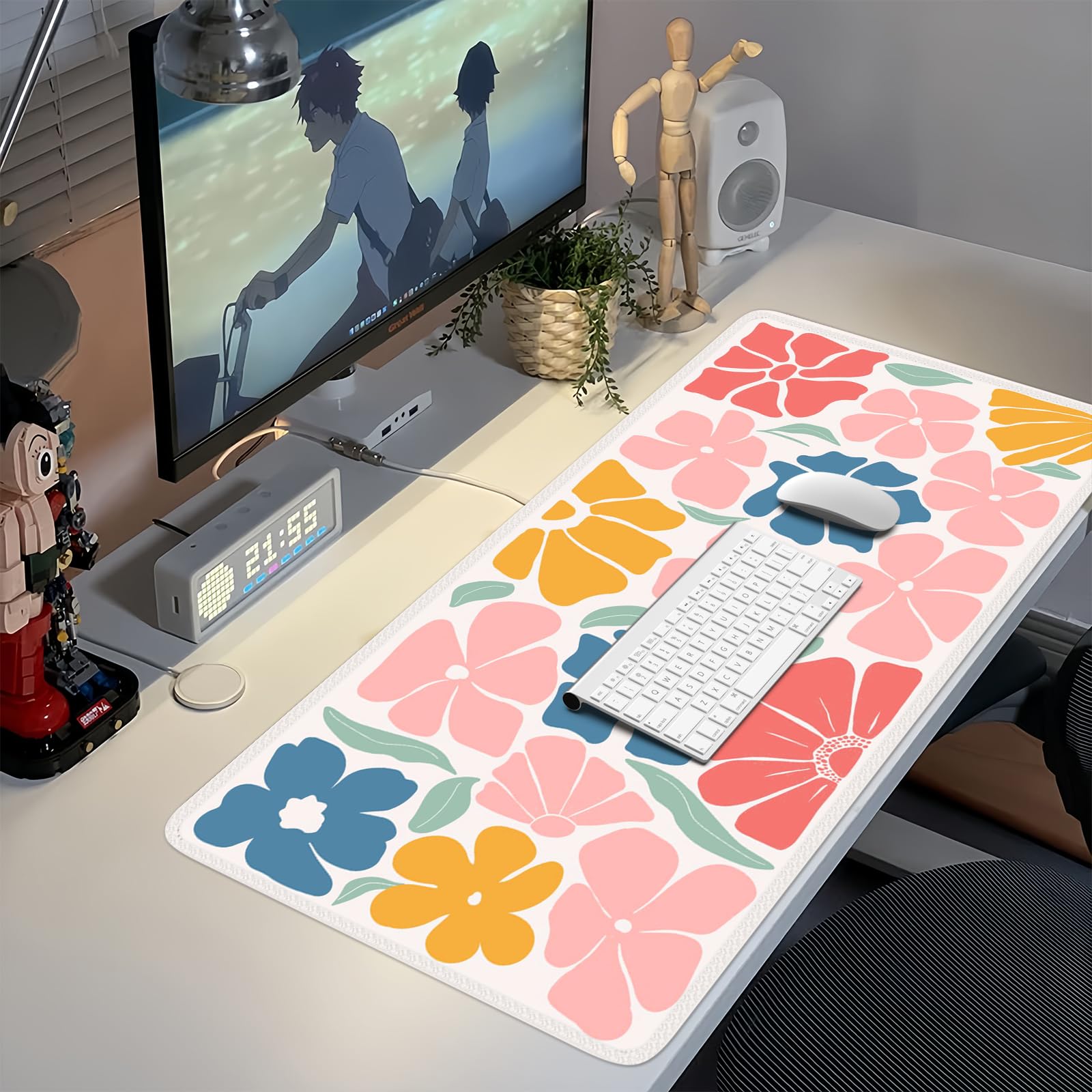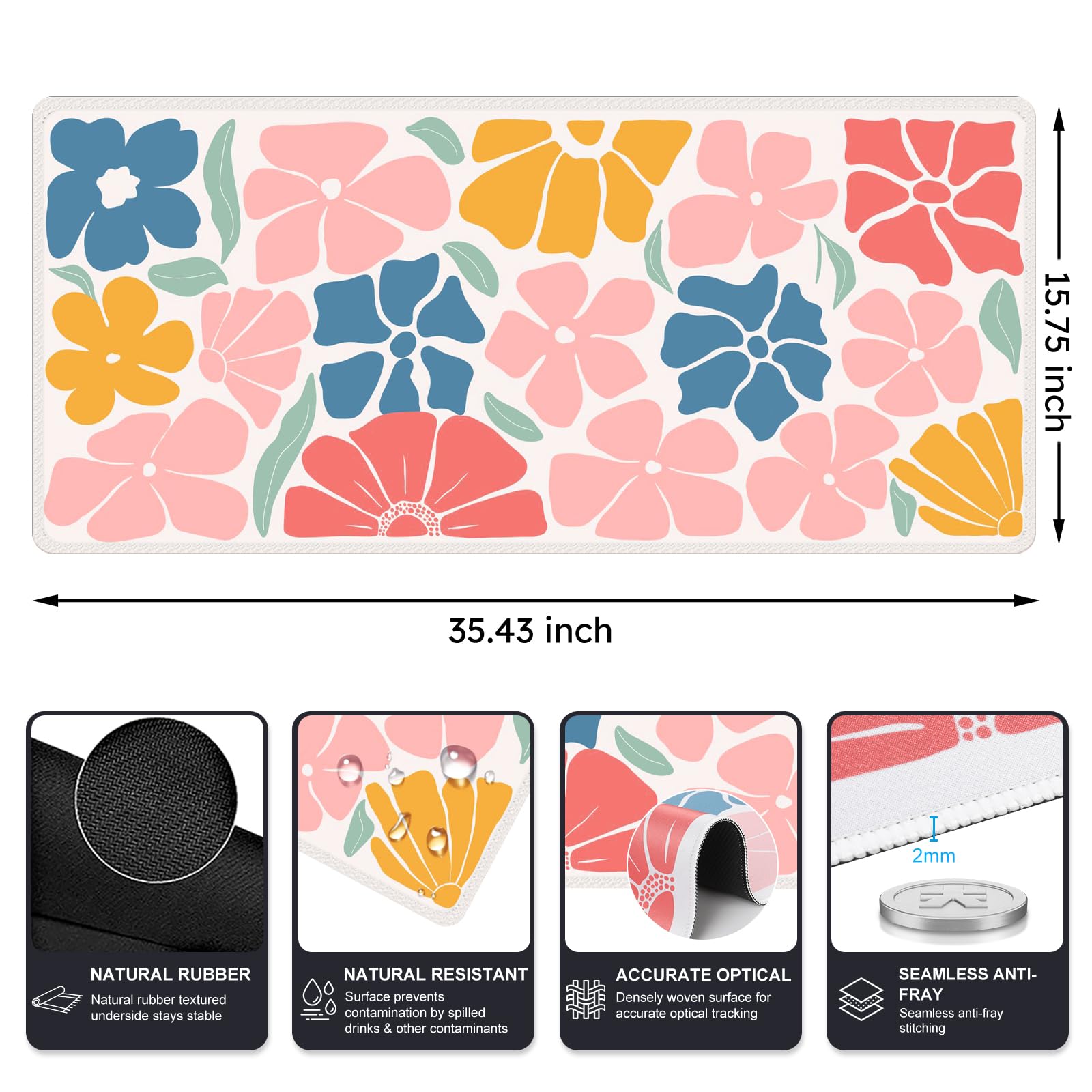 Extended Large Mouse Pad Size: Large desk pad mat's measure: 35.4 x 15.7 inches. The keyboard and mouse pad is large enough to have a mouse, gaming keyboard, and other desk items Just immerse into your work or games