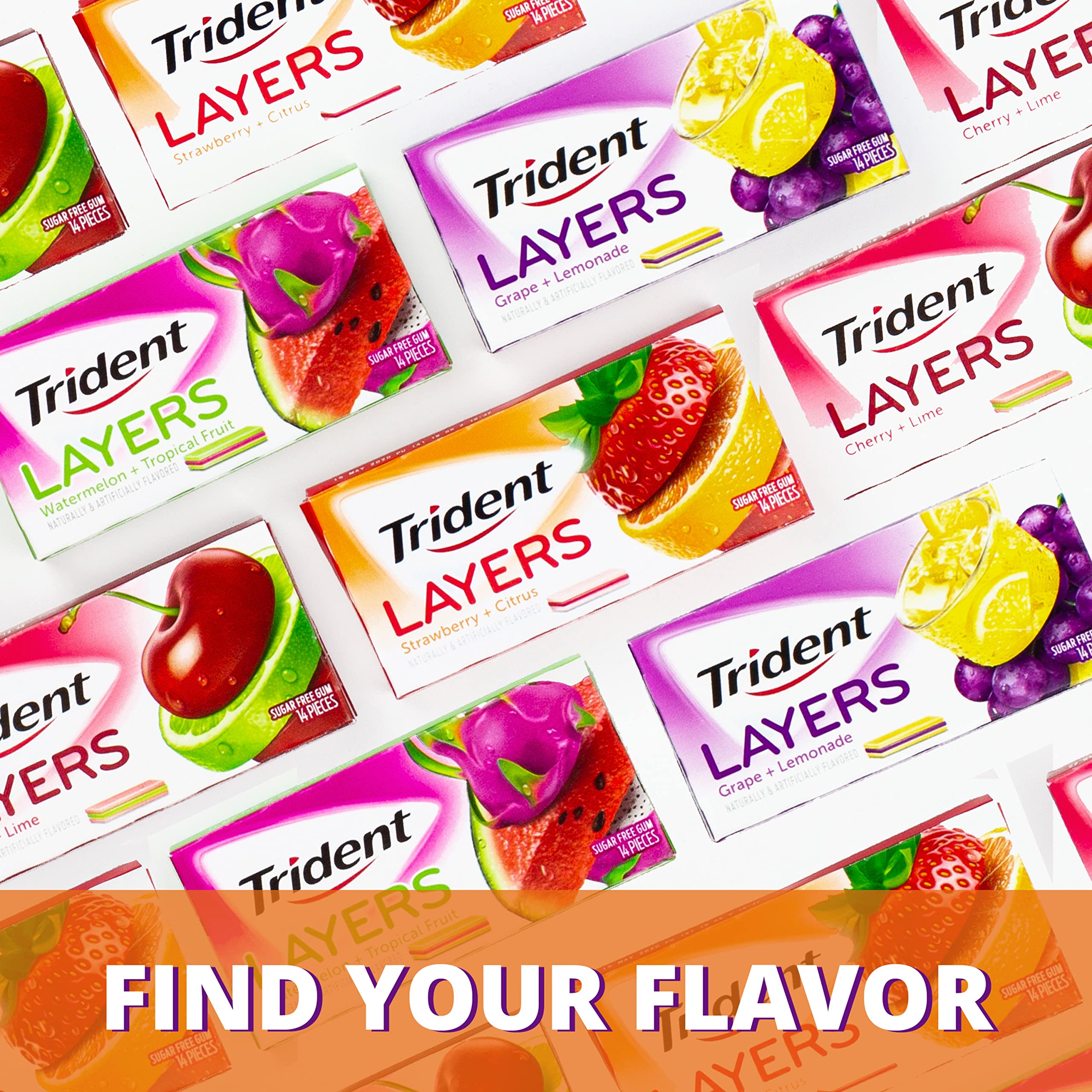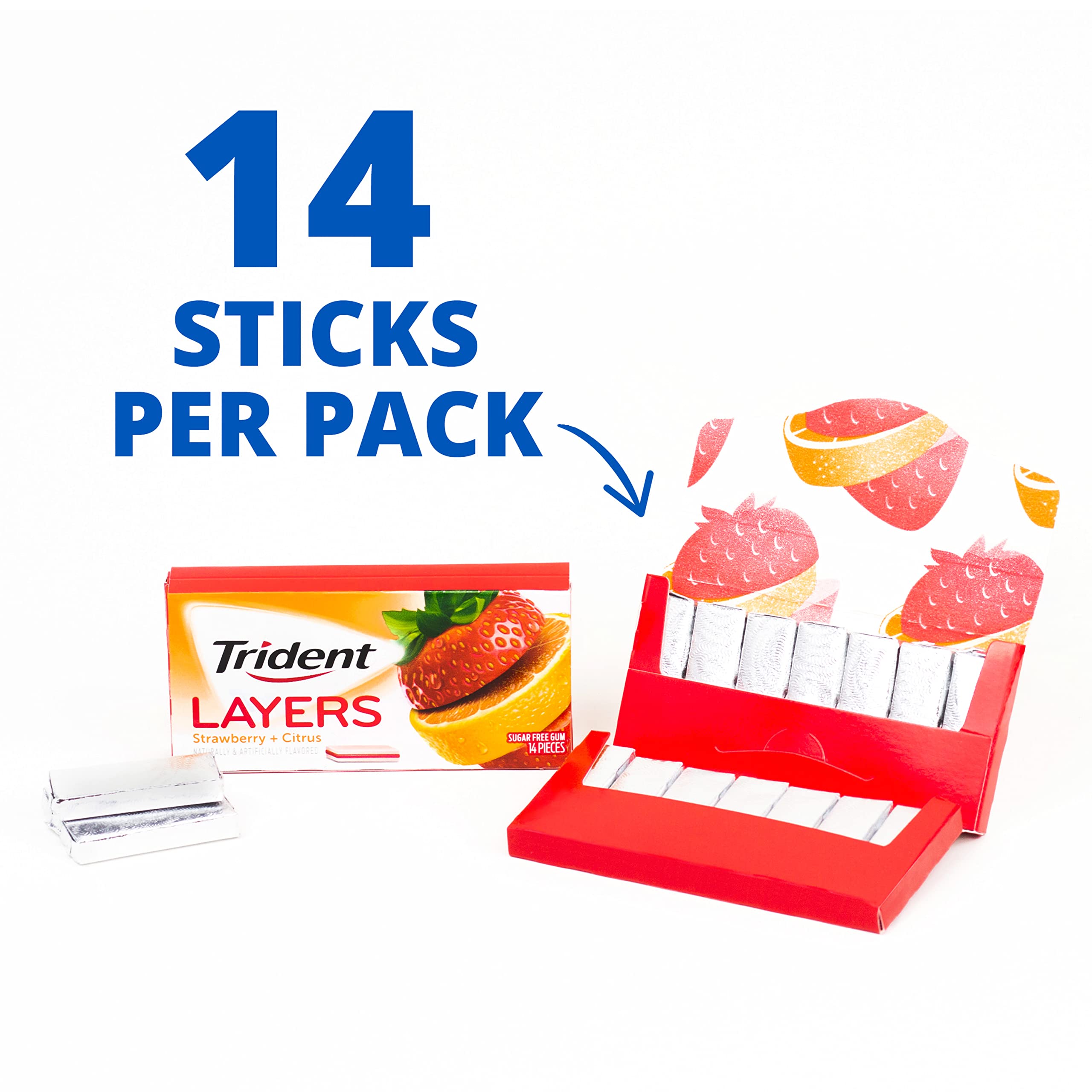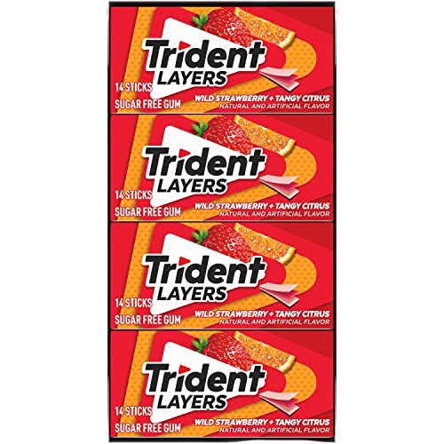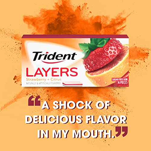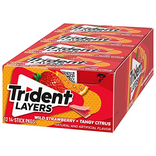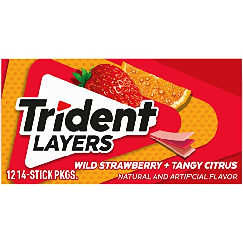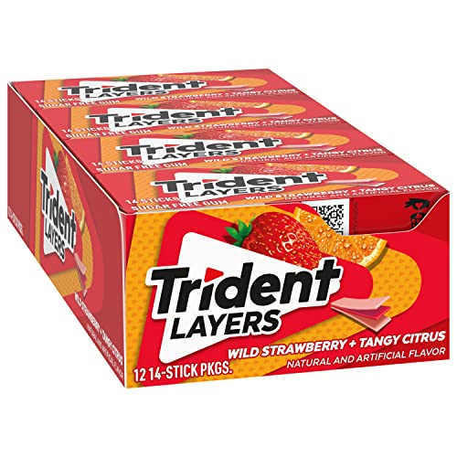 Trident Layers Strawberry & Citrus Sugar Free Gum makes gum extra fun by swirling mouthwatering flavors together, creating a unique gum chewing experience that deeply satisfies any set of taste buds. With 50% fewer calories than sugared gum, each fruity piece of this sugarless gum has a little bit of strawberry flavor bang, a little bit of citrus flavor tang and a whole lotta yum. Trident Layers strawberry citrus gum has long lasting flavor and fights plaque to maintain a healthy smile. Bulk gum packs give you plenty of strawberry gum to stock your home, company or small business, and Trident Layers Gum bulk packs come in handy as party favors. Each individual pack of gum in this Trident Layers 12 pack is easy to toss in your car, backpack or desk drawer, so you can enjoy fresh breath wherever you are.
