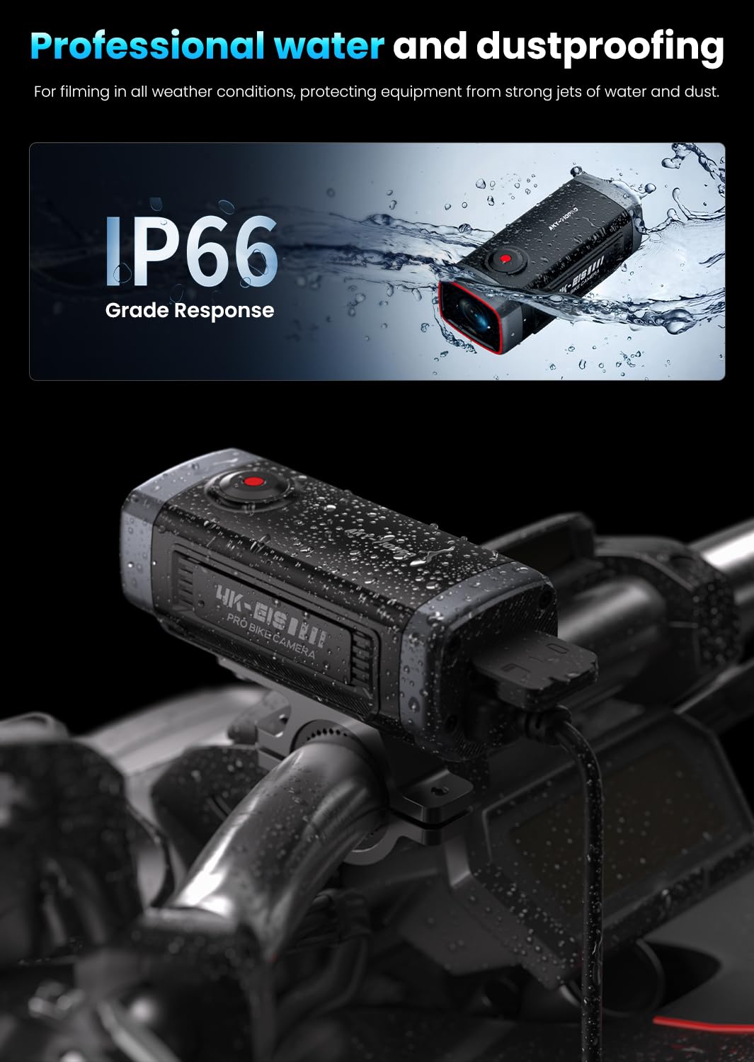 【Revolutionary Sensor Technology 4K Motorcycle Dash Cam】Capture your ride with unparalleled clarity using our Motorcycle /Bike Camera for riding, boasting a Starvis IMX335 sensor. It delivers smooth, crystal-clear 2K resolution videos at a swift 55FPS, with the ability to upscale to 4K 28FPS. The 142-degree wide-angle lens ensures a broad view, capturing your adventures even in low-light conditions (Ideal for Motorcycle,Bicycle,Outdoor Sports).
