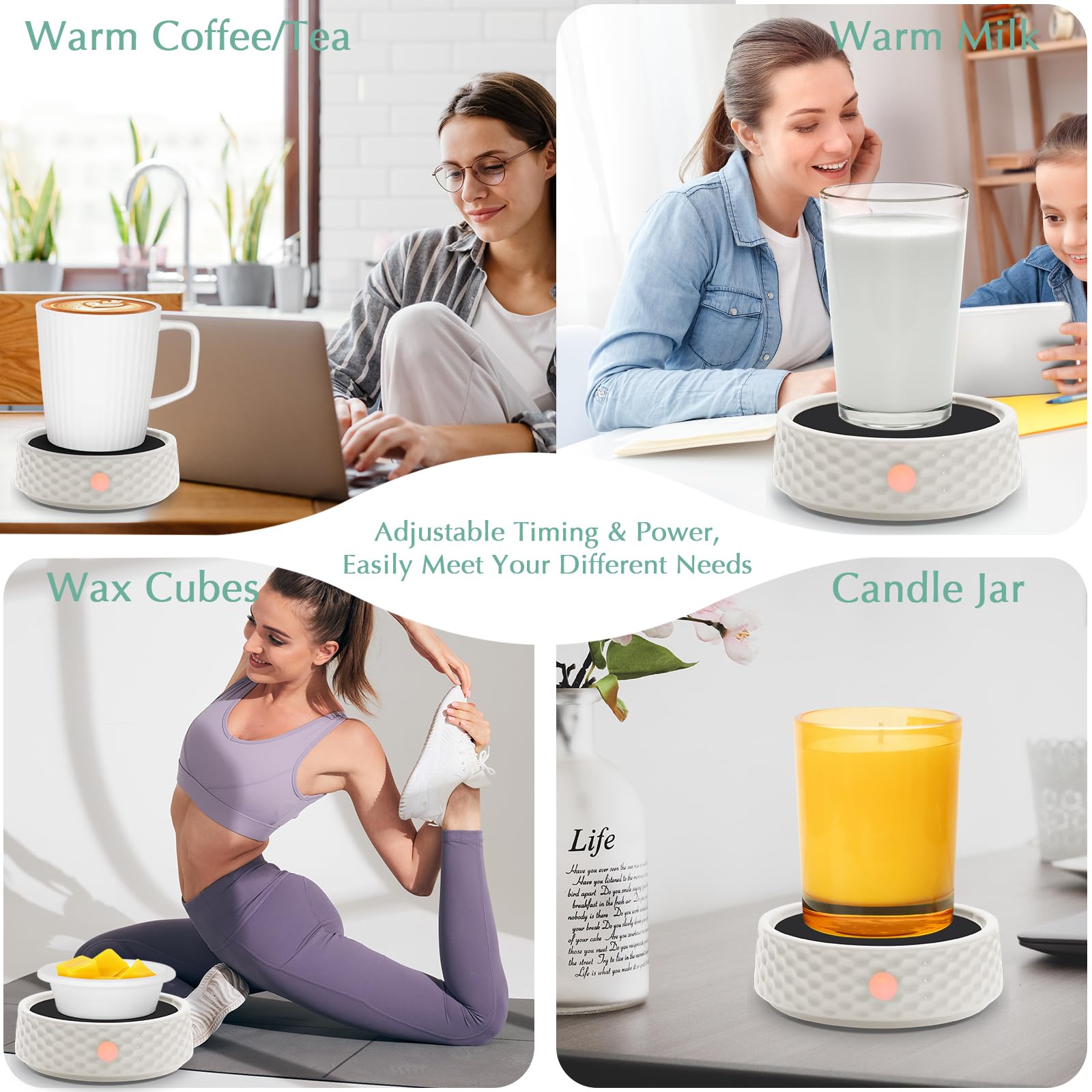 Keep coffee mug/ tea cup warm: This coffee mug warmer is perfect for keeping your hot beverage warm. This tea cup warmer has a 3.97 inch heating plate to keep your coffee, tea, hot chocolate, and other beverages at the perfect temperature! Take this innovative candle wax melts warmer plate with you in your leisure time or office work. Please check your coffee mug/ tea cup/ candle jars dimension before usage.