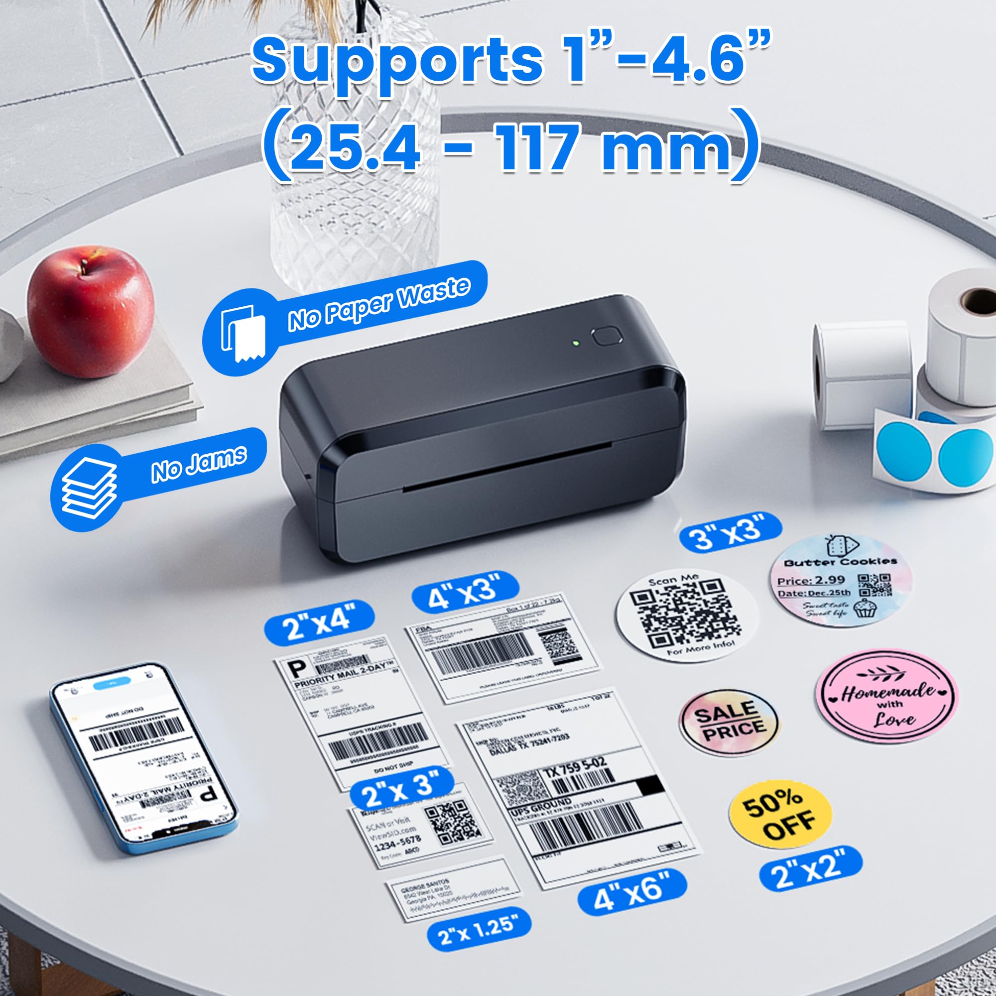 Wide Compatibility: Our thermal label printer is compatible with major e-commerce platforms like eBay, Shopify, Amazon, Etsy, Poshmark, USPS, FedEx. Our printer supports labels ranging from 1.0 to 4.6 inches, Ideal for envelope, address, barcode, packaging, home or office labels