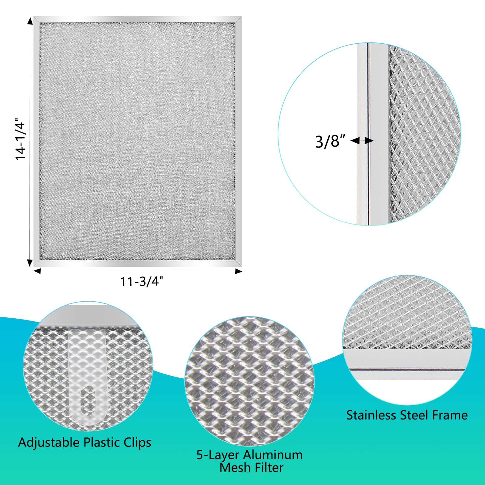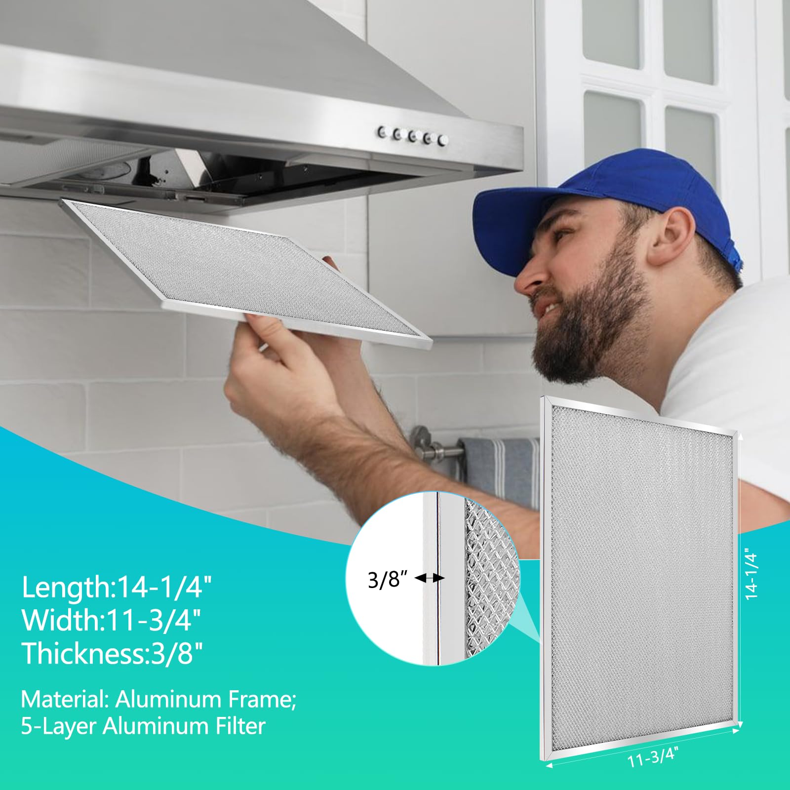 【Universal Fit】Designed as replacement filters for most standard 14x12 inch range hoods, ensuring broad compatibility.