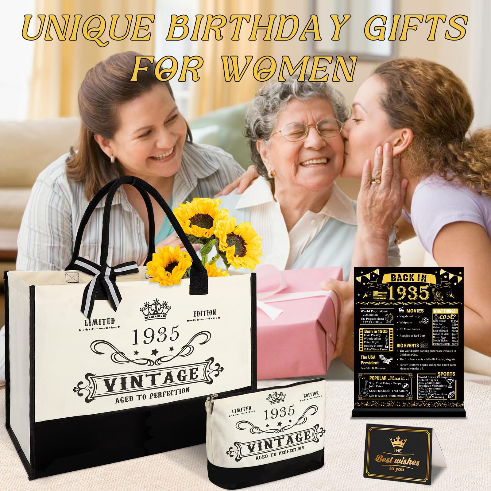 Great Gift for Her 91st Birthday: This gifts set for 91st birthday women contains: 1 X 1935 beach bag, 1 X cosmetic bag, 1 X back in 1935 poster, 1 X greeting card. Unique classy 91st birthday gifts will be a adorable gift for women's 91st birthday. This birthday 91 gifts themed idea makes the perfect choice for putting a smile on her face on their special day.