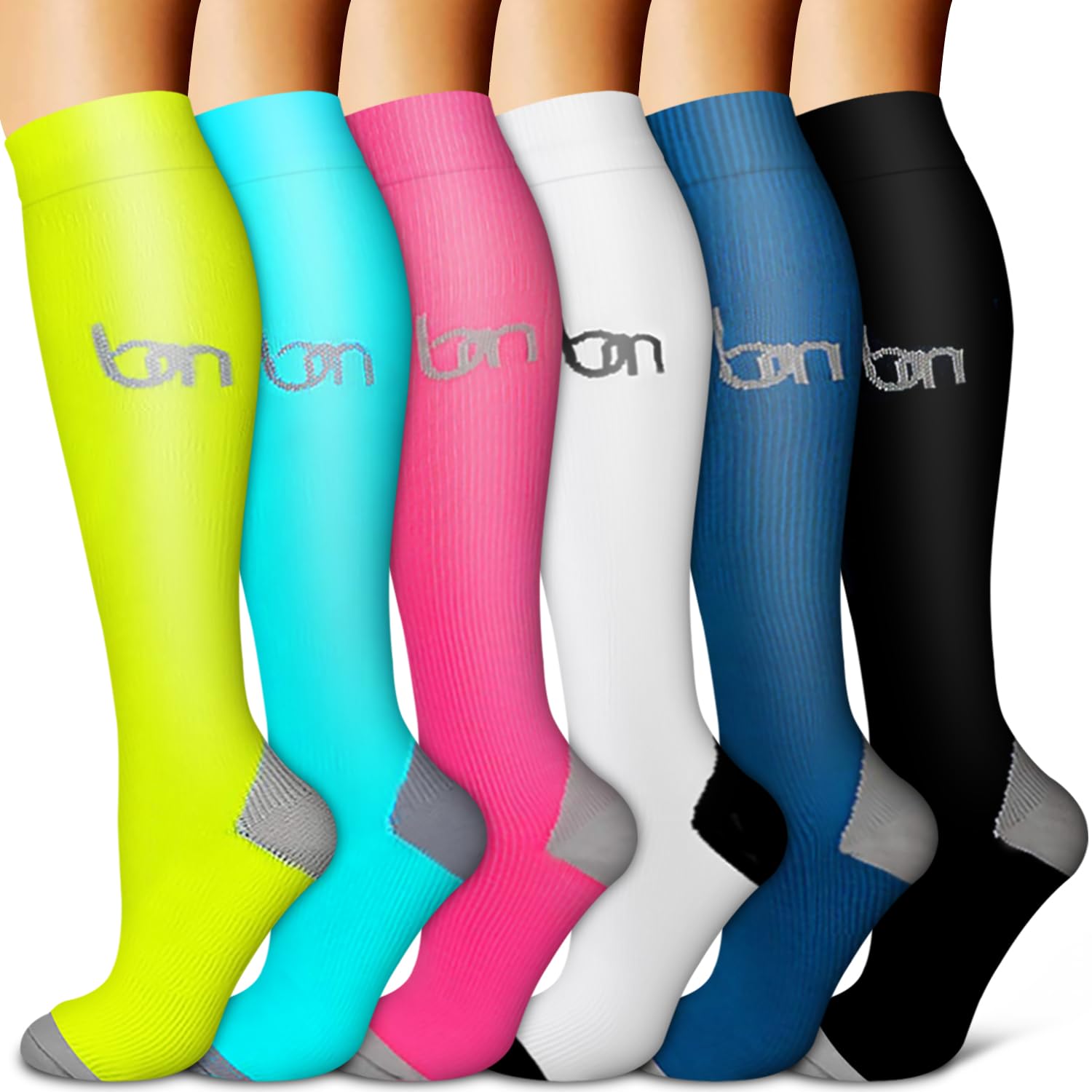 VALUE PACK - Each pack includes 6 pairs of compression socks. Our design of comfort and style comes at a very affordable price in comparison. There are available in different fabrics and colors. They are discreet and look like the ordinary socks you have already wear to work. Our socks are universally suitable for all work.Whether you are an athlete,teacher,flight crew,receptionist, office worker, pregnant, elderly ,they'll work for you as you work for yourself and your family.