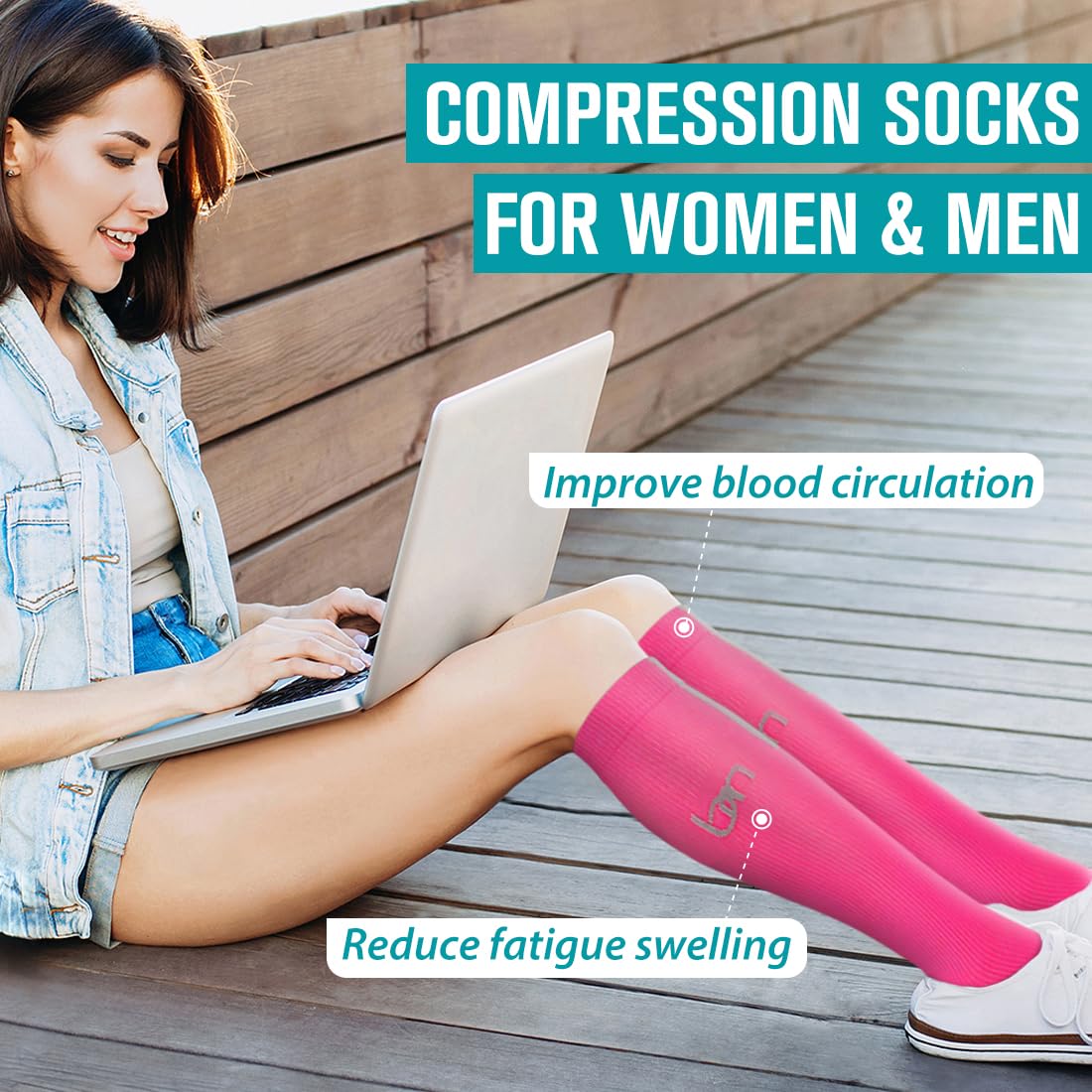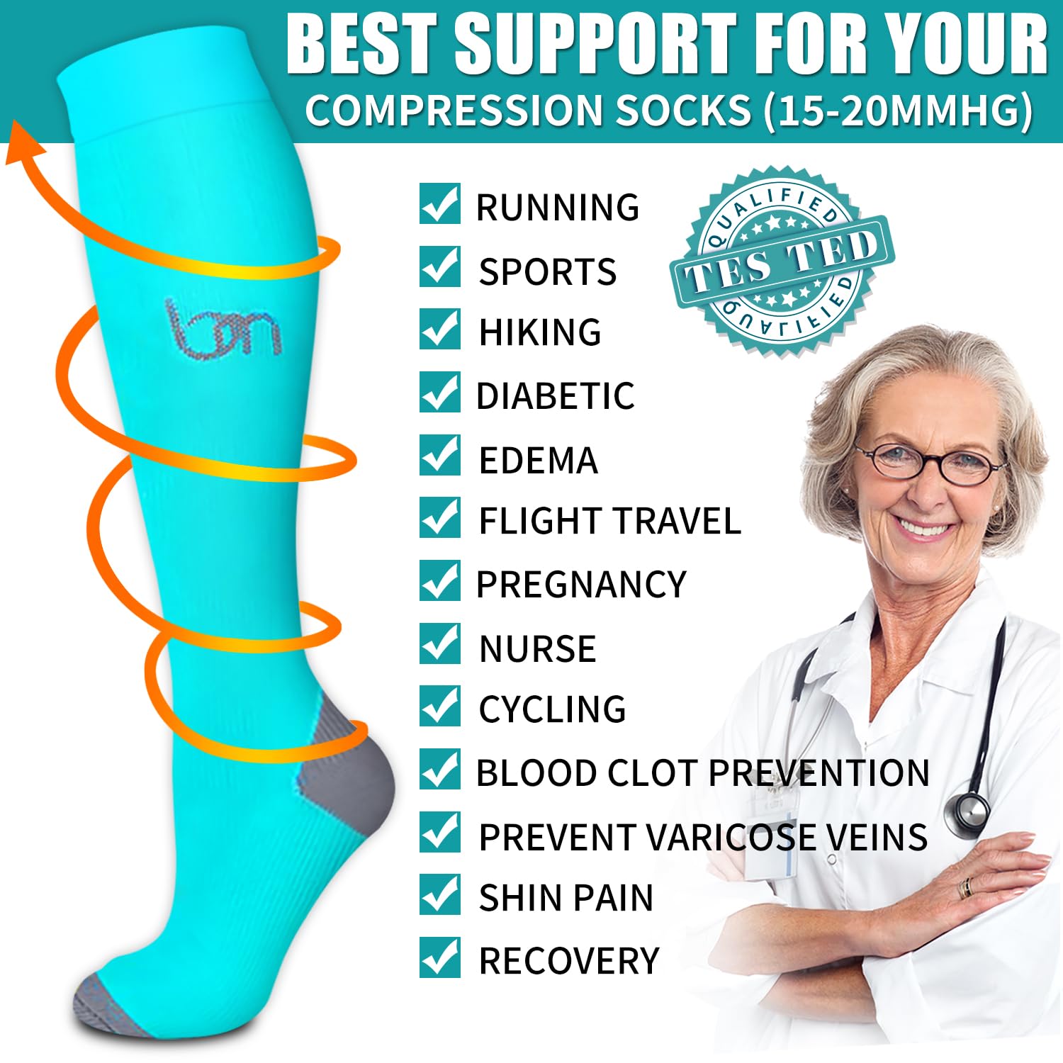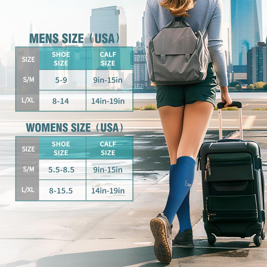 UPGRADE YOUR COMPRESSION SOCKS DRAWER! - With all the tasks of work and family (and of life itself!) we may forget to pay attention to and maintain the health of our legs. Our compression socks are designed to help increase circulation, improve leg and foot comfort, and reduce soreness and swelling, increase energy, All day comfort.Great for long periods of sitting or standing, endurance sports, flying and travel, post-workout recovery, pregnancy, and spider & varicose veins.